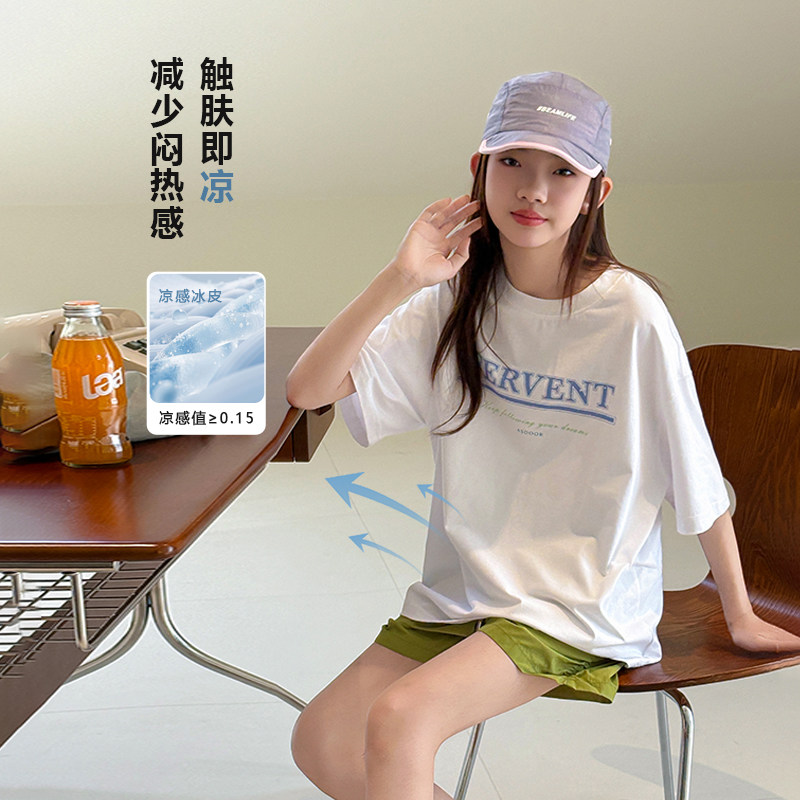 【凉感冰皮】初中生T恤2026夏装新款青少年速干短袖休闲半袖上衣