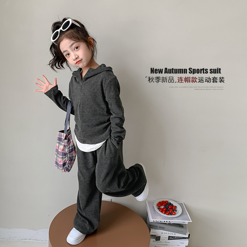 女童春装套装2026新款儿童运动服连帽卫衣洋气女孩休闲长裤两件套