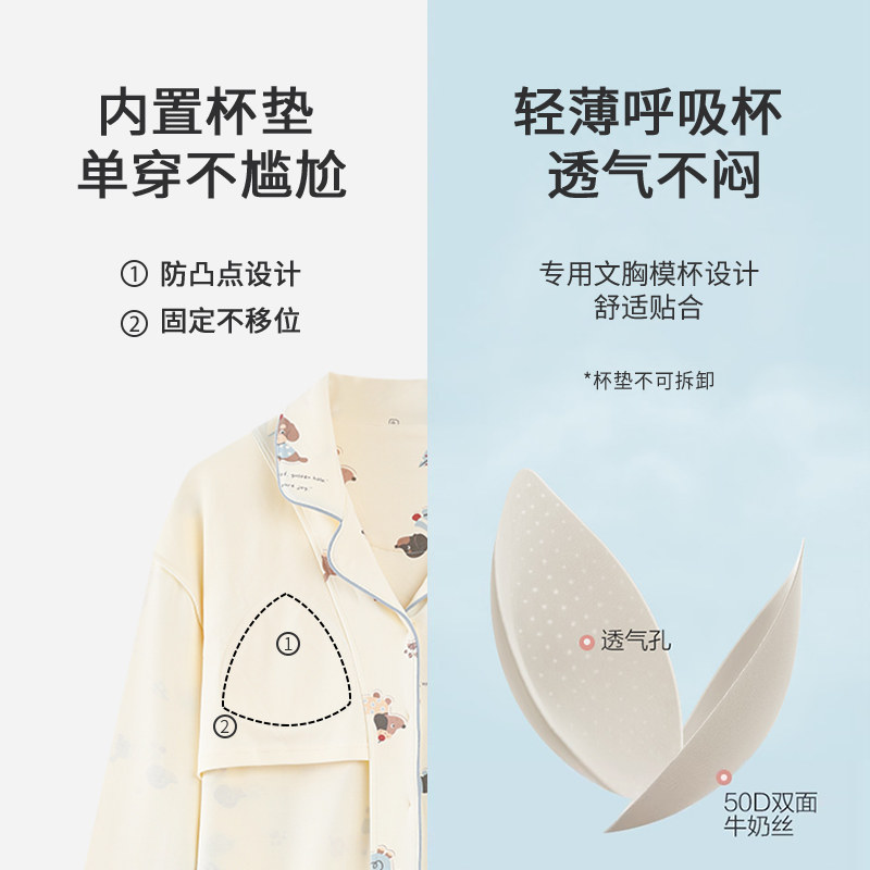 浪莎带胸垫睡衣女款春秋季2026新款纯棉长袖多巴胺卡通甜美家居服