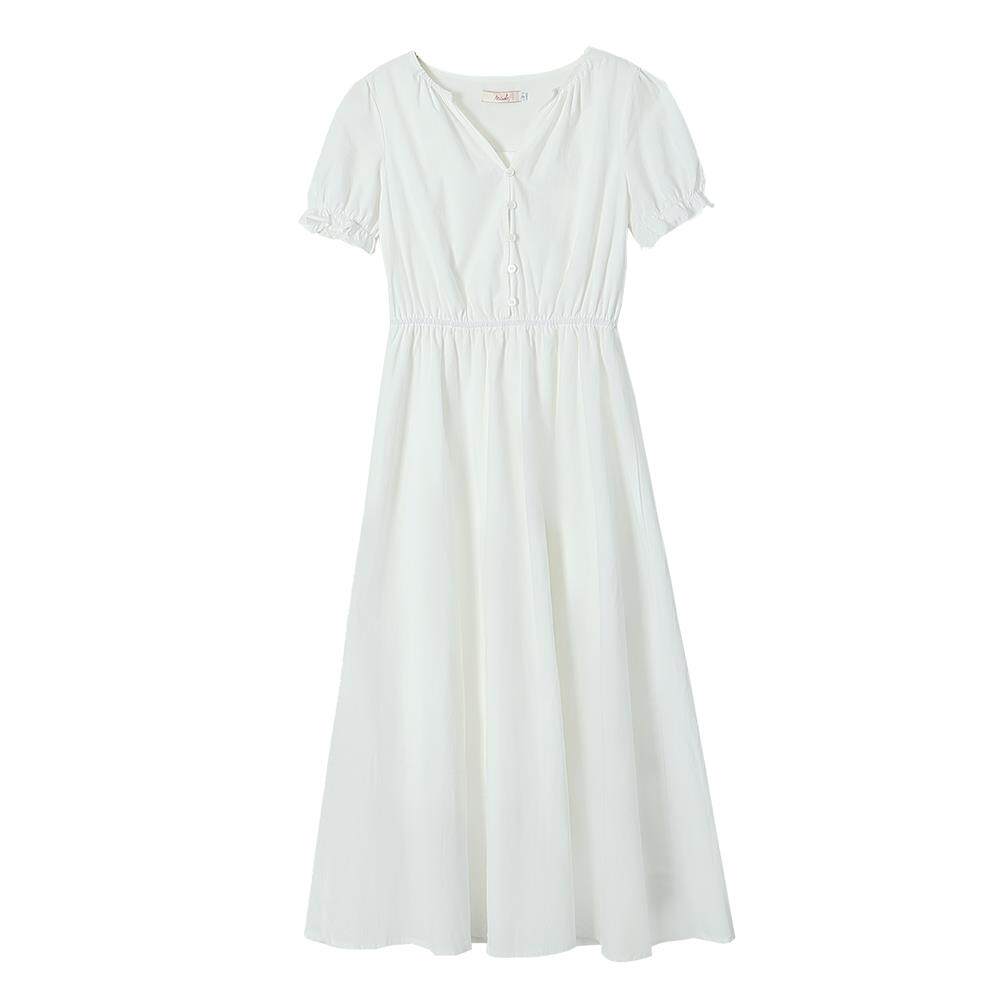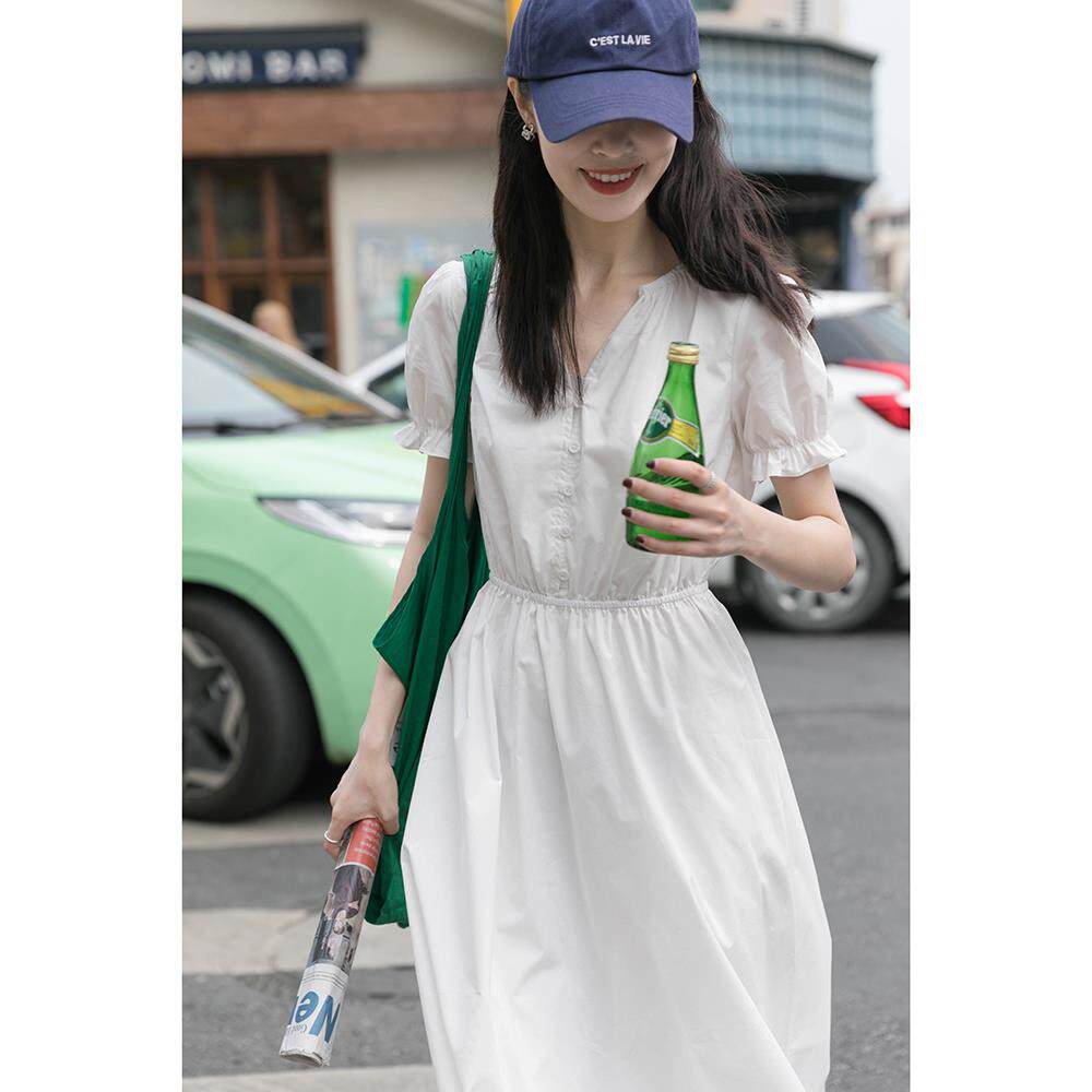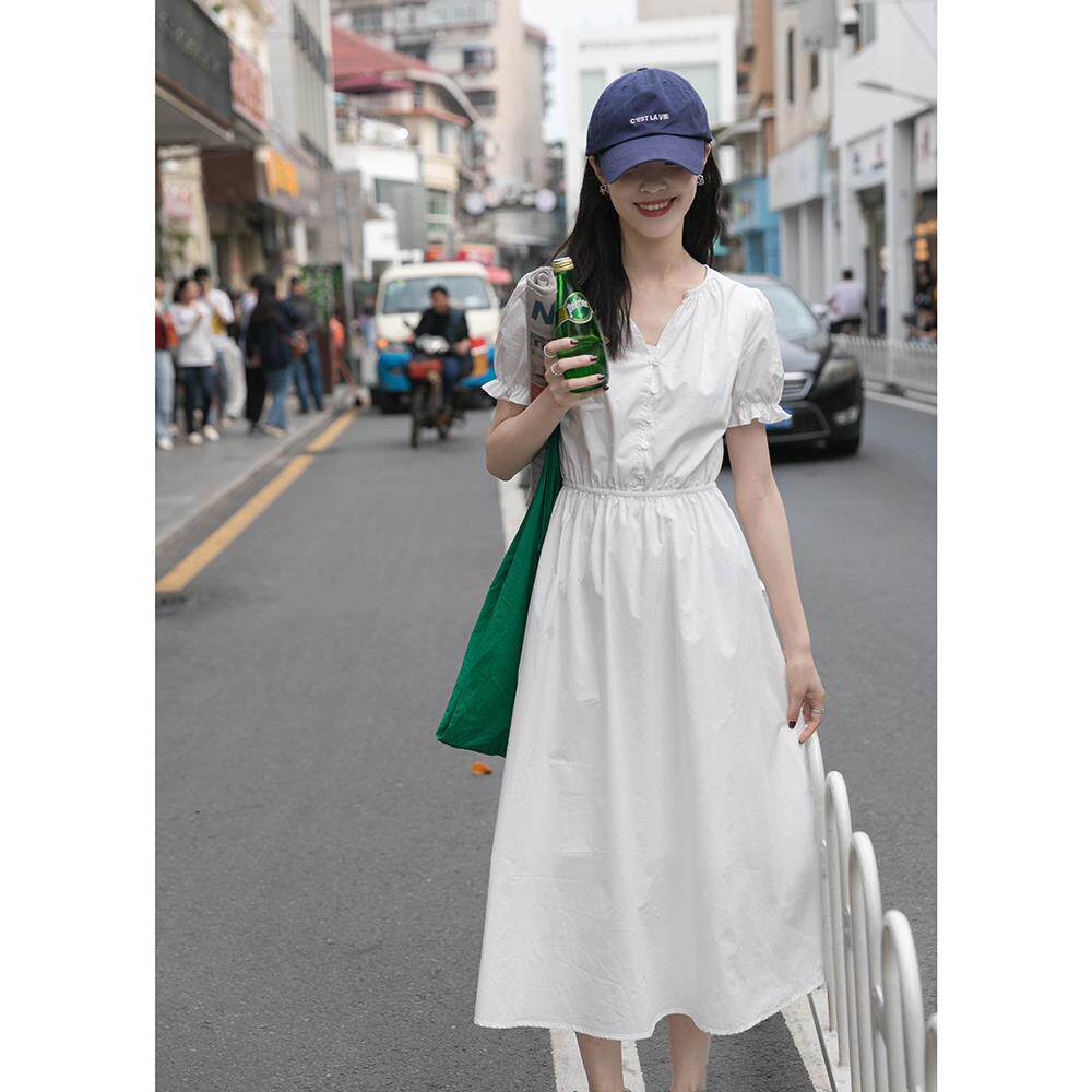 觅定白色连衣裙女法式初恋小白裙高级v领裙子小个子领证海边长裙