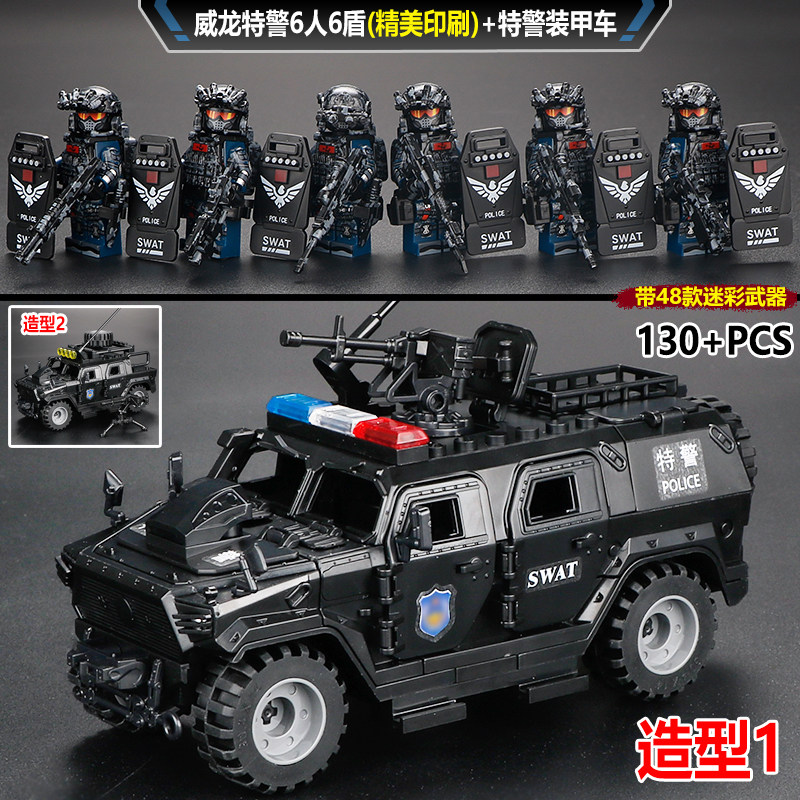 三角洲行动重装威龙特警装甲车悍马积木人仔暗区突围士兵军事玩具