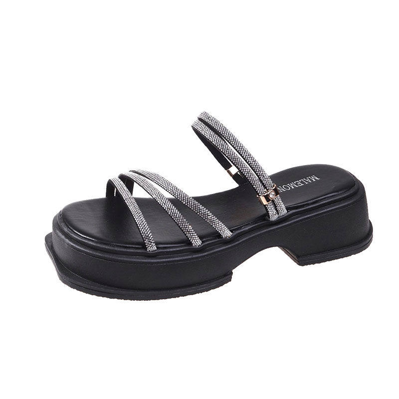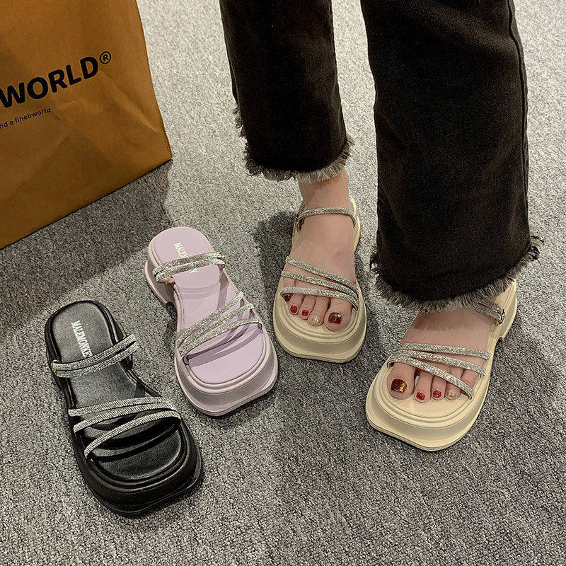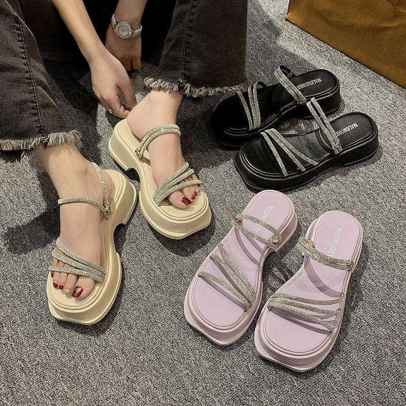 2026新款夏季配裙子水钻增高凉鞋女款两穿拖鞋海边松糕厚底沙滩鞋