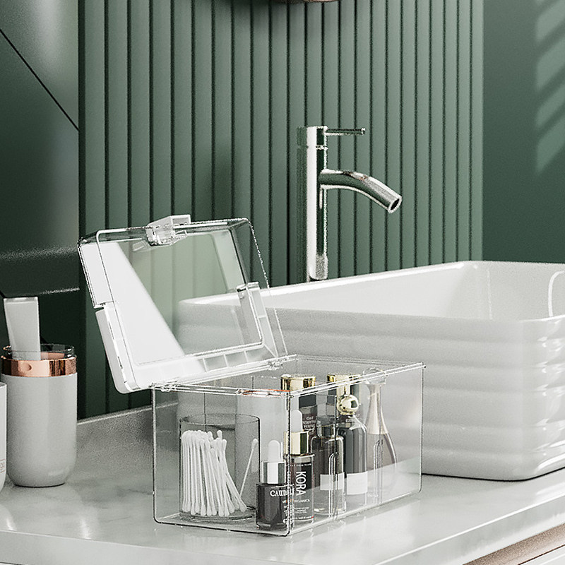 大容量小物件口罩旅行家用药箱带盖透明收纳盒护肤品收纳箱储物箱