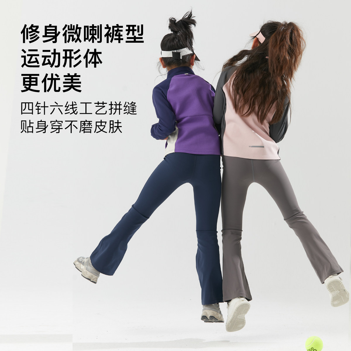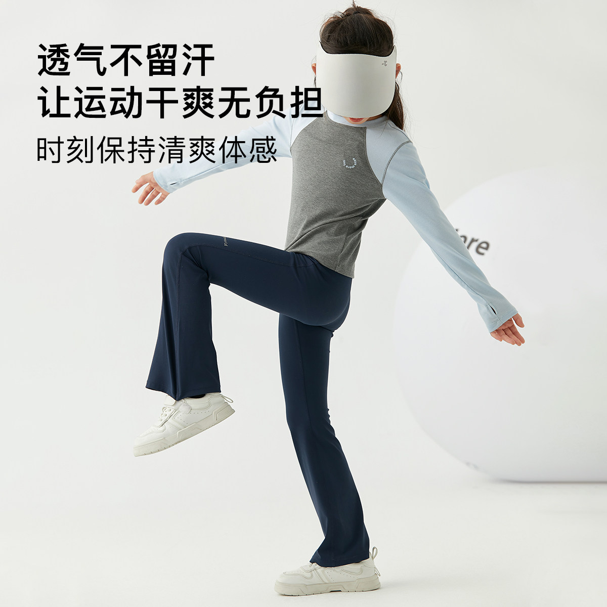 Eayakids儿童修身黑色女童裸感春装高弹微喇中大童运动瑜伽裤子