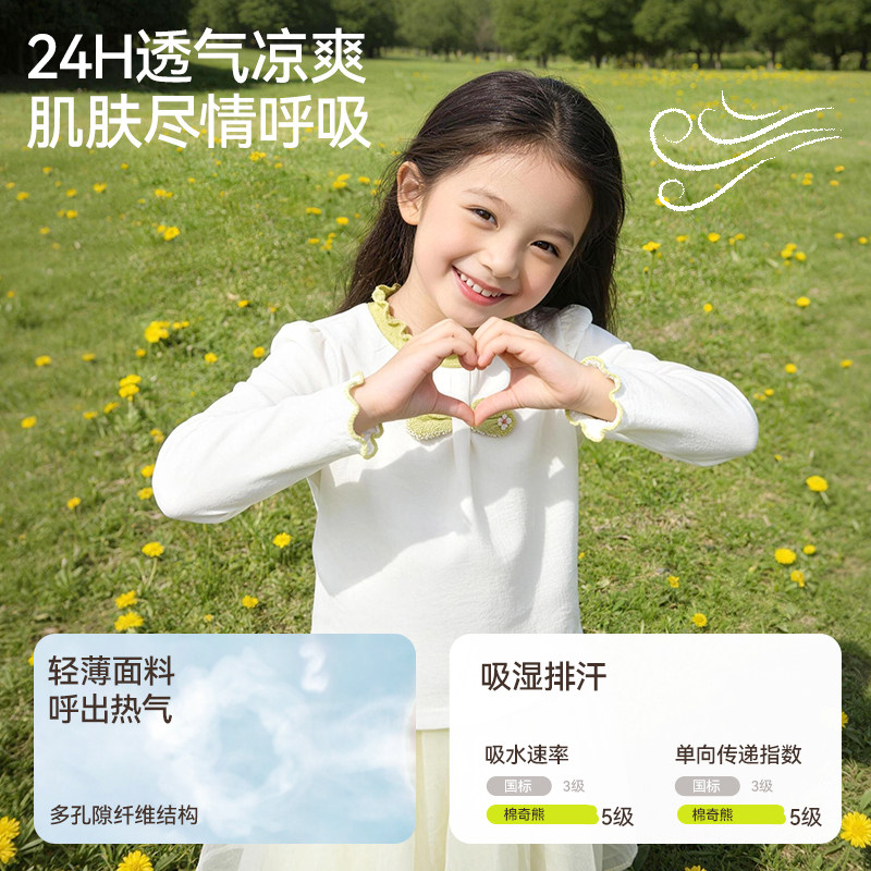 女童T恤2026春季新款a类纯棉长袖上衣女孩洋气时髦打底衫儿童夏装