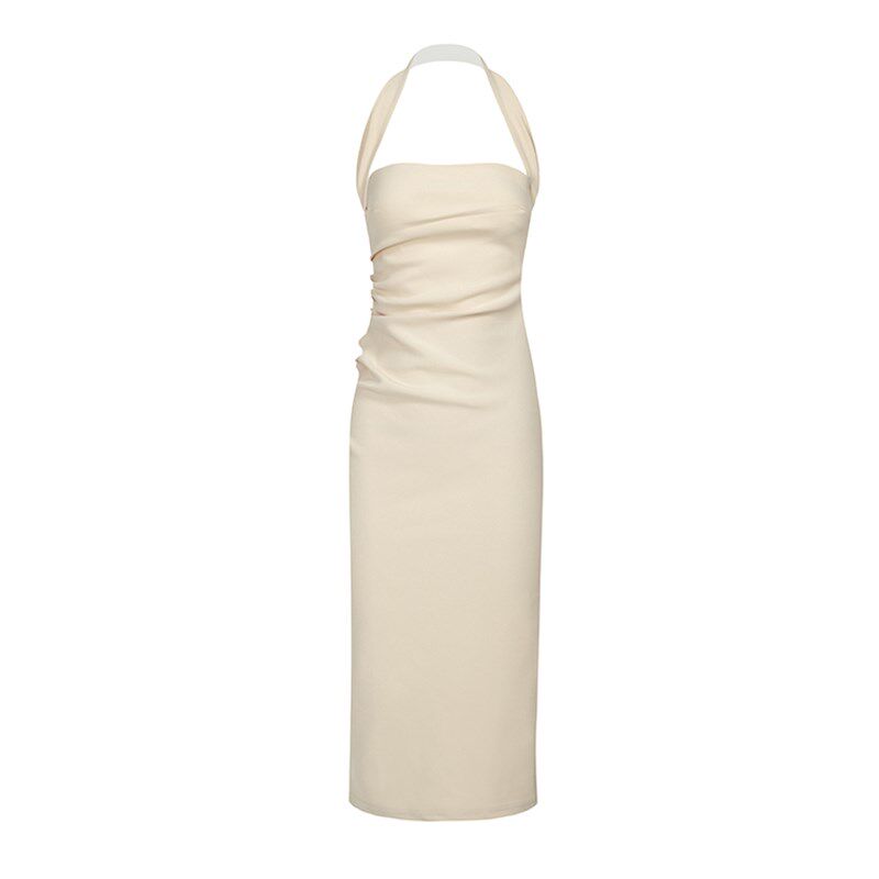 法式小众挂脖连衣裙女夏高级感气质纯欲褶皱修身显瘦吊带包臀裙子