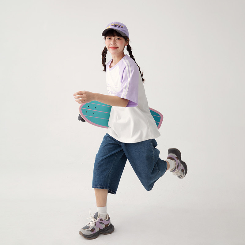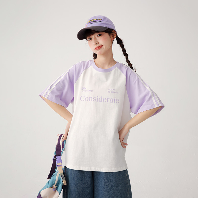 诺诺公主S1N初中生夏季插肩袖圆领短袖t恤女透气学院风青少年洋气