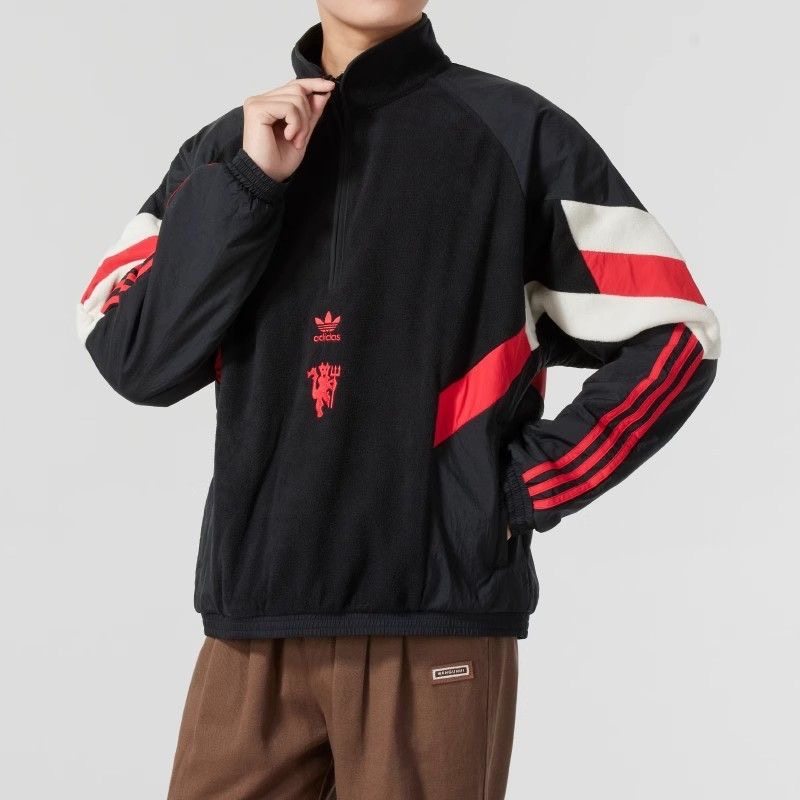 adidas 舒适柔软徽章半拉链半开襟条纹学院卫衣男款 IS6528