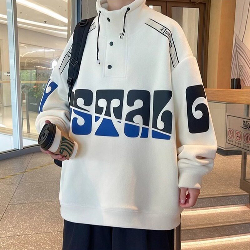 秋冬季青少年学生奥粒绒卫衣男加绒加厚外套加大码潮流立领上衣服