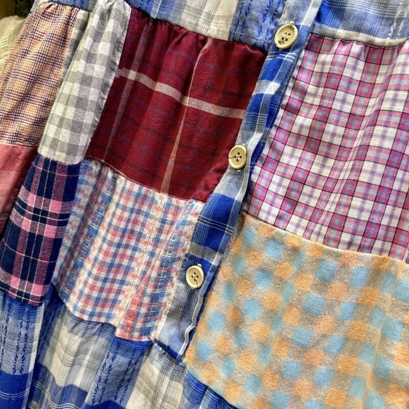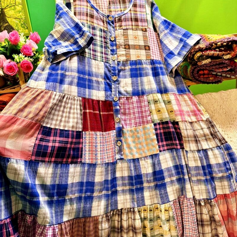 到脚踝超长裙/重工百家布拼接大摆/短袖连衣裙夏加长款大码女格子