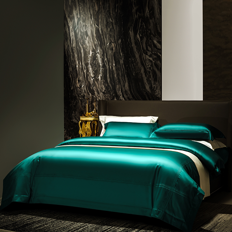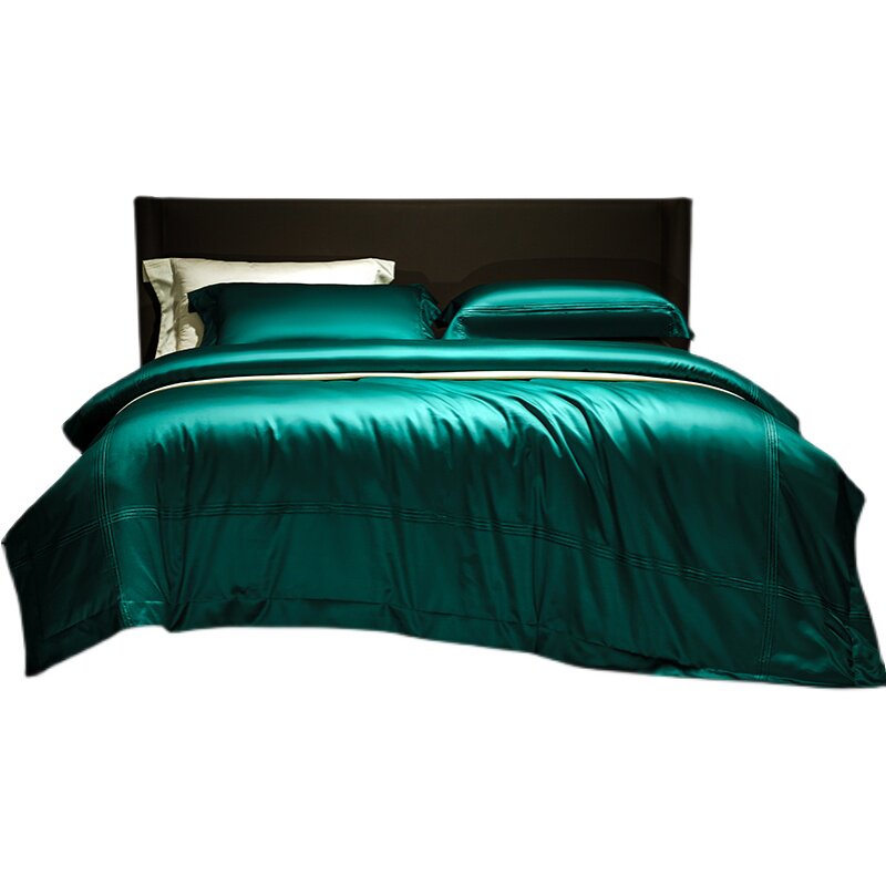 高端春夏款全棉四件套进口200支长绒棉绿色被套床单纯棉床上用品