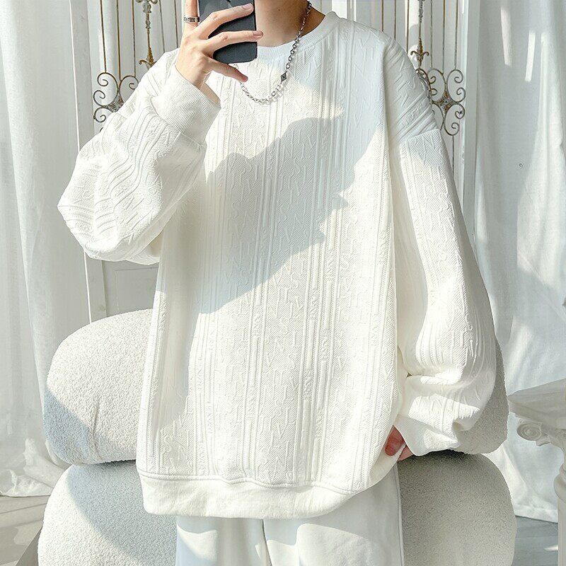 纯色提花打底卫衣T恤男女款春秋季青少年百搭宽松休闲长袖上衣潮