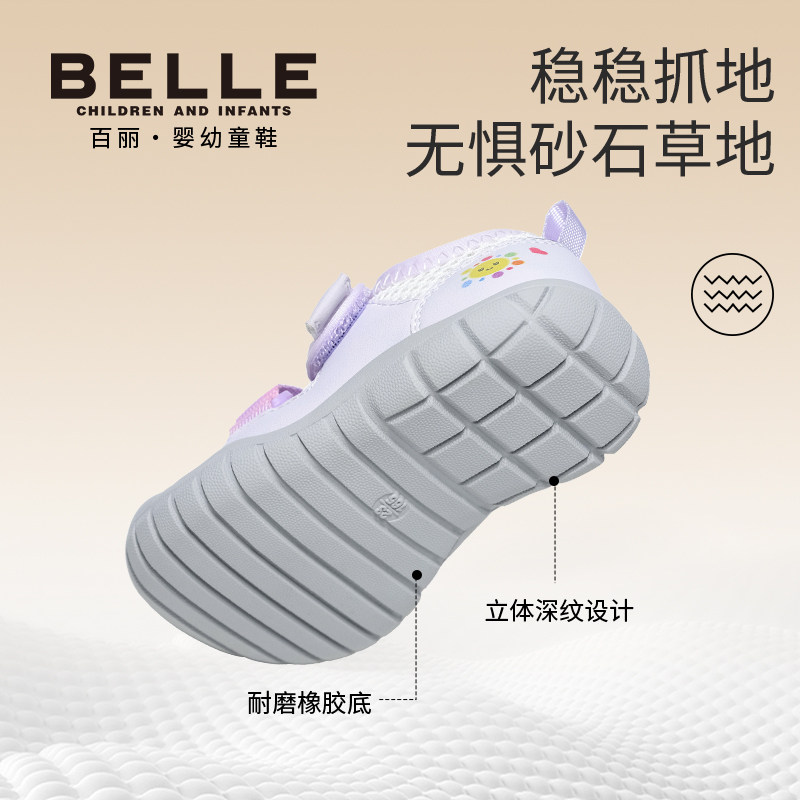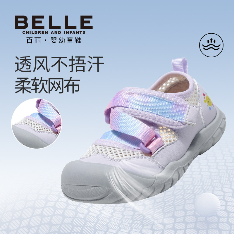 百丽童鞋26春季新品女童儿童运动鞋包头防撞休闲鞋网面透气宝宝鞋