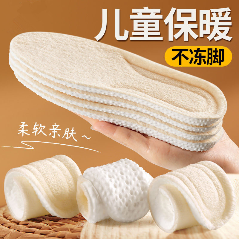 儿童保暖鞋垫冬季加绒加厚小孩专用纯棉毛毛运动减震透气吸汗防臭