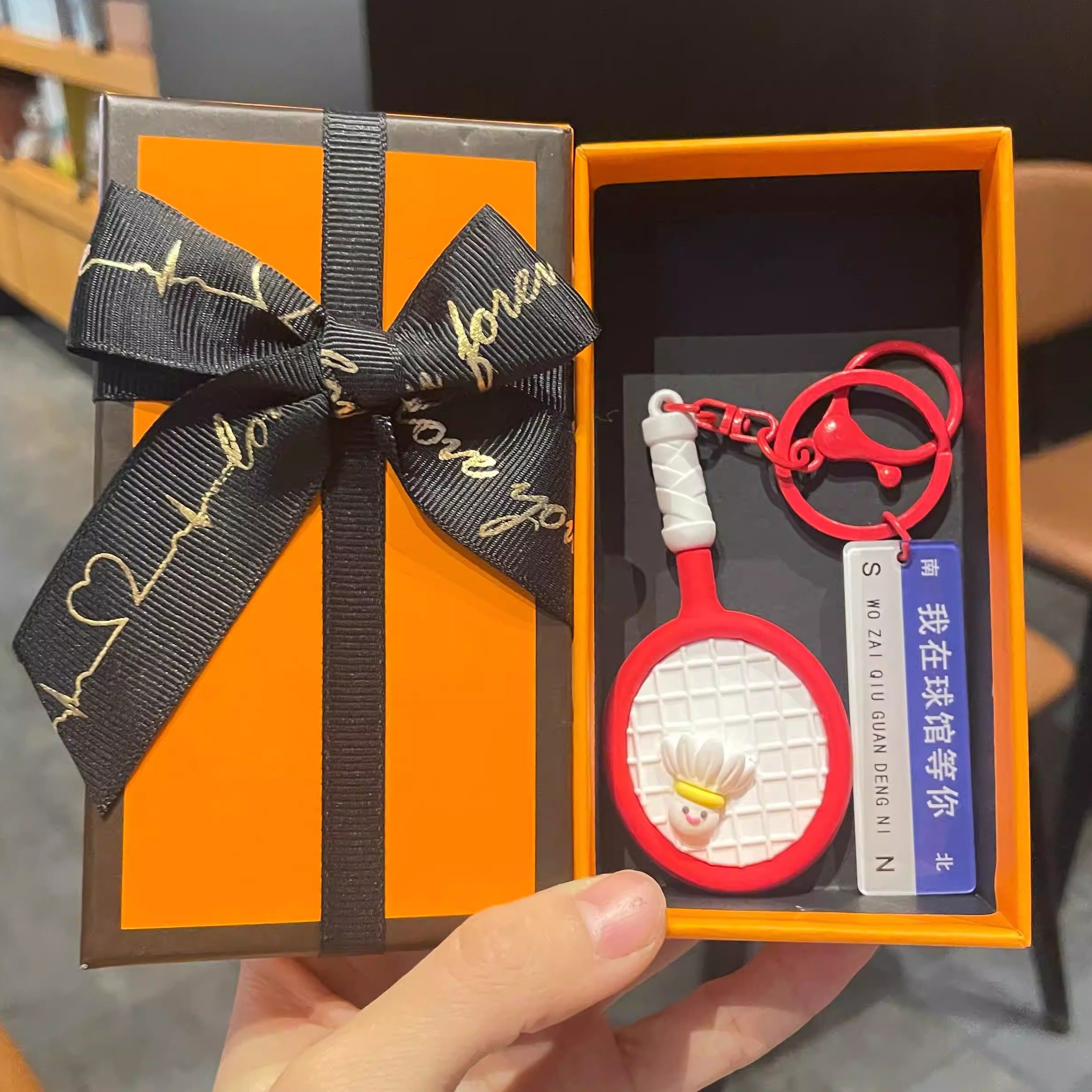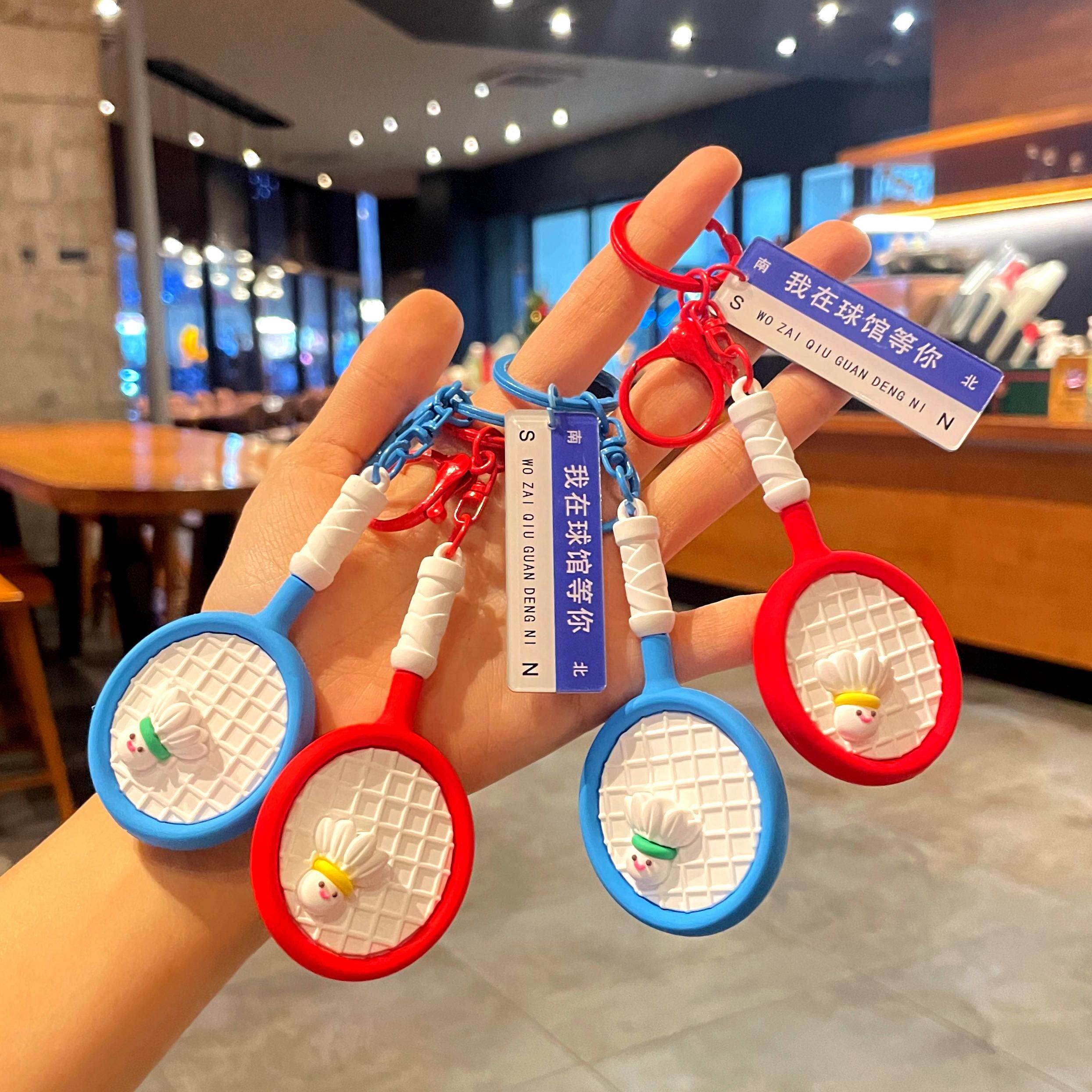 新款卡通运动羽毛球拍钥匙扣精致男女生情侣背包包挂件创意礼物