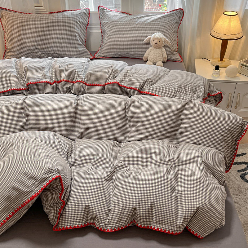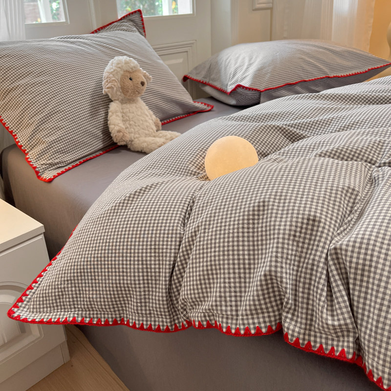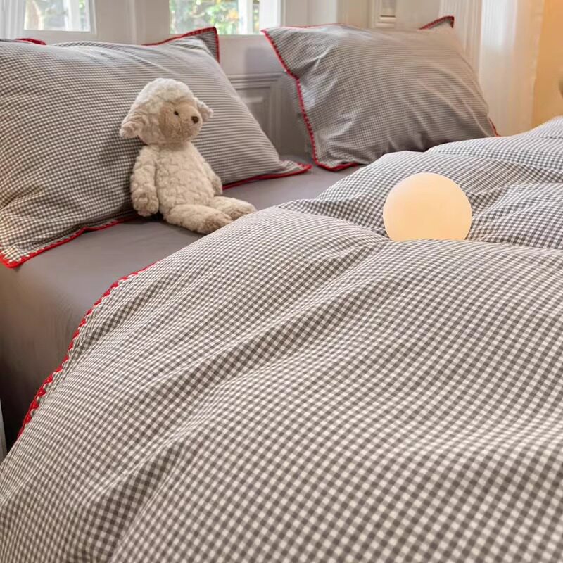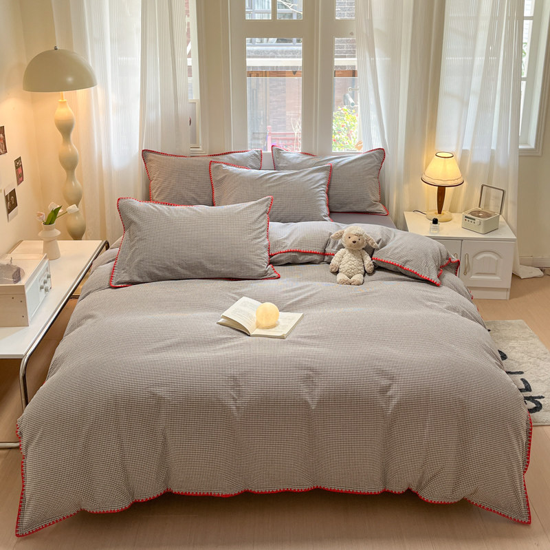 简约风格子条纹全棉水洗棉四件套2026新款纯棉男生宿舍三件套被套