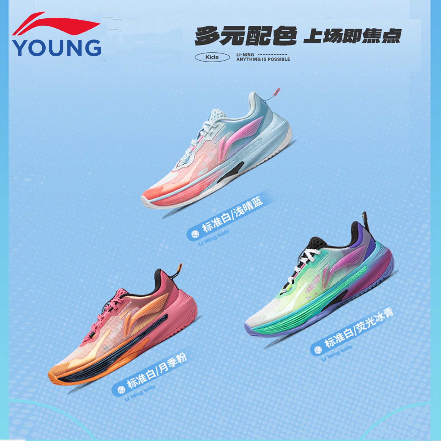 李宁儿童篮球鞋男童大童2026夏季新款青少年先锋灵网面透气运动鞋