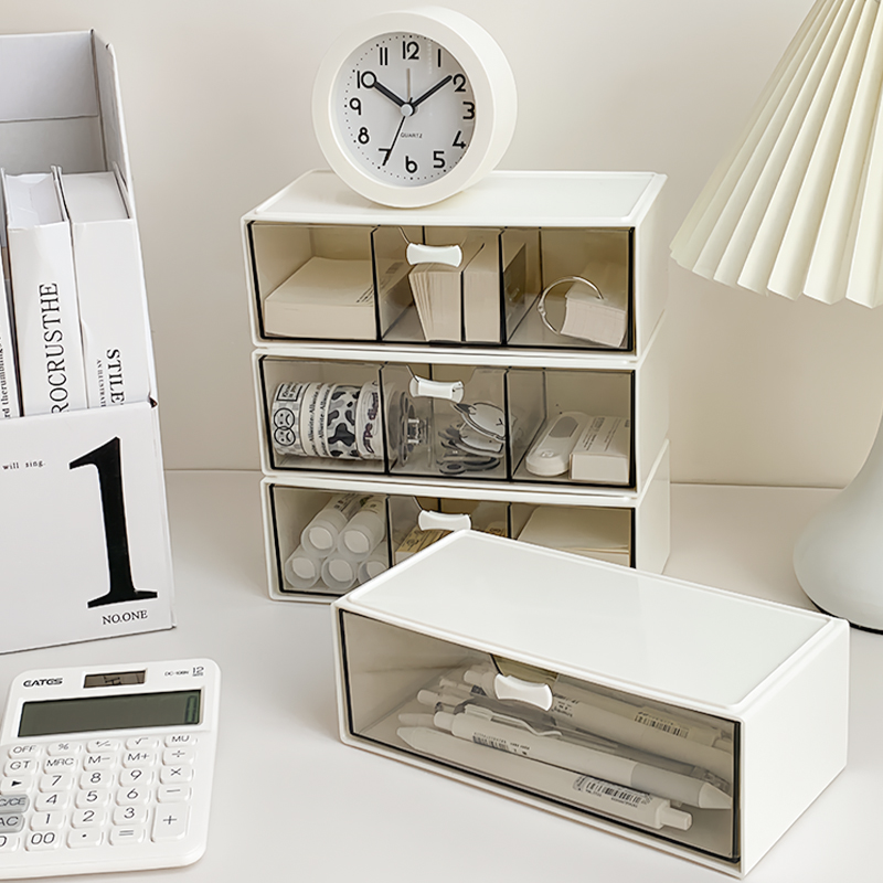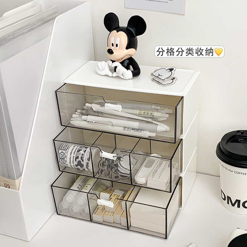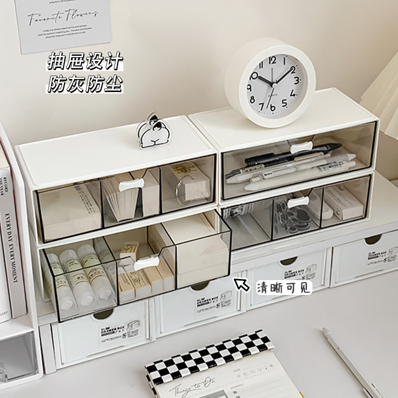 桌面收纳盒透明储物盒宿舍化妆品整理盒办公室杂物抽屉式置物架子