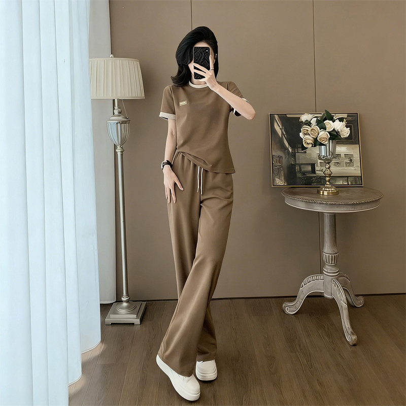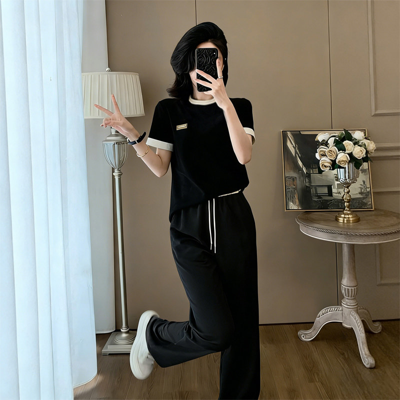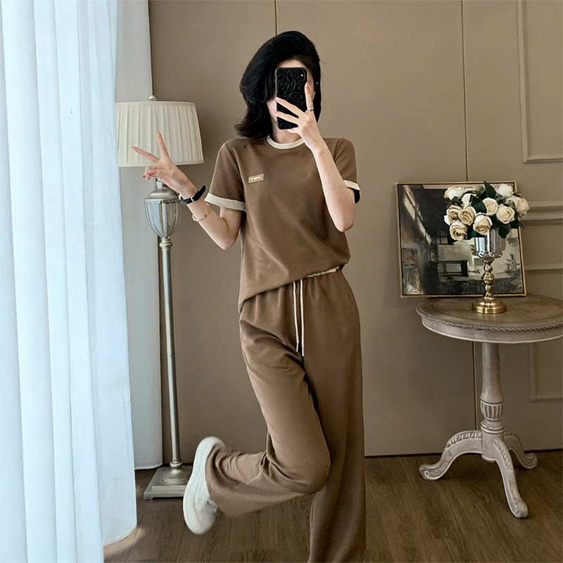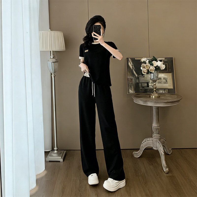 夏季韩版慵懒风休闲运动套装女小个子穿搭薄款冰丝长裤两件套潮夏
