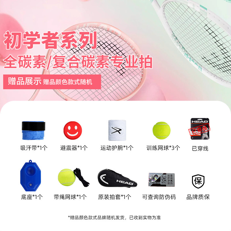 Head海德网球拍男女大学生初学者新手全碳素带线回弹网球训练套装