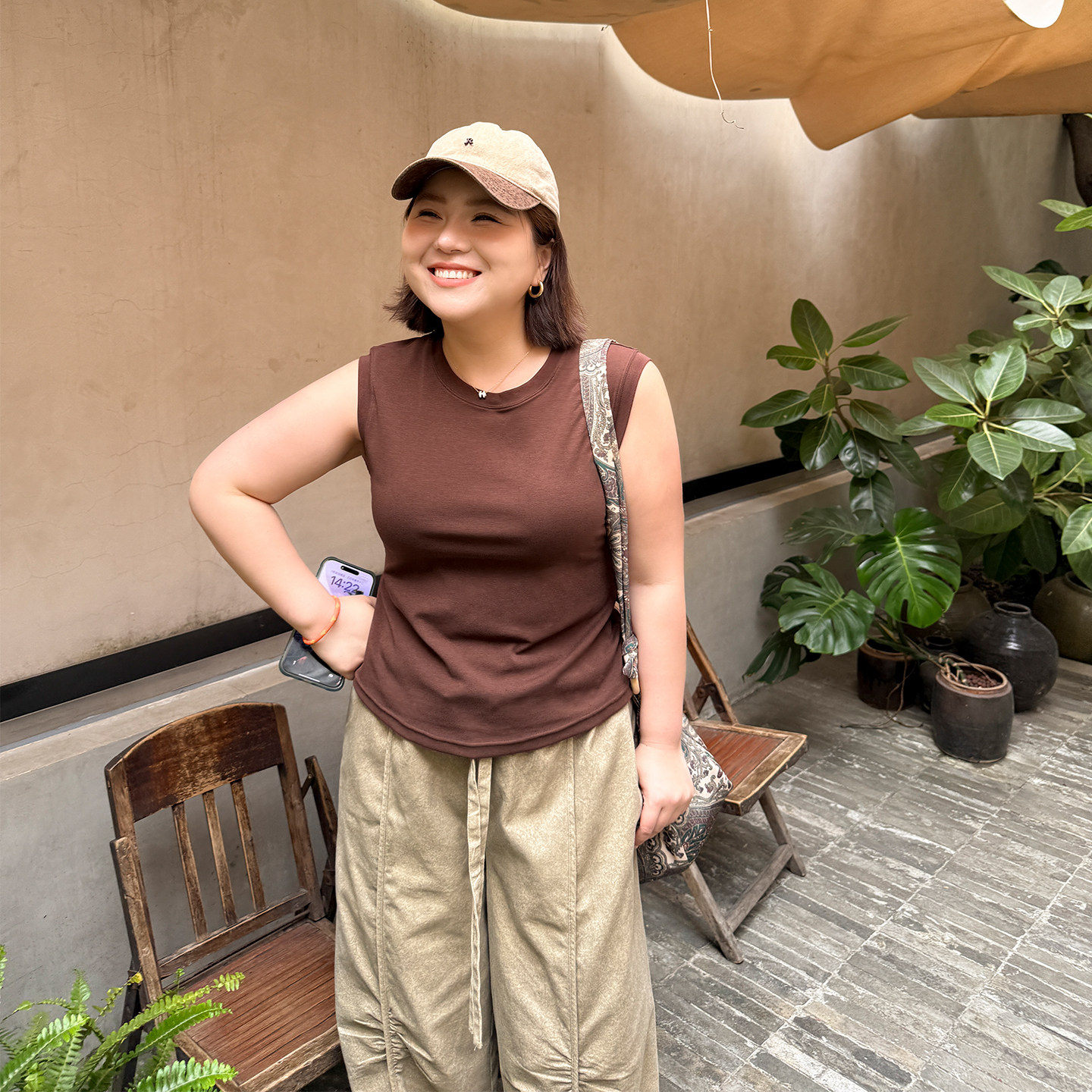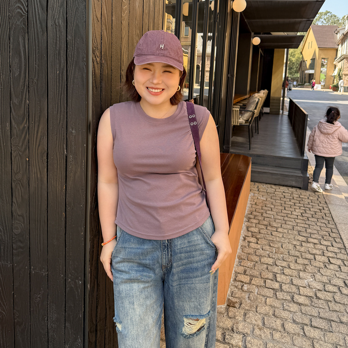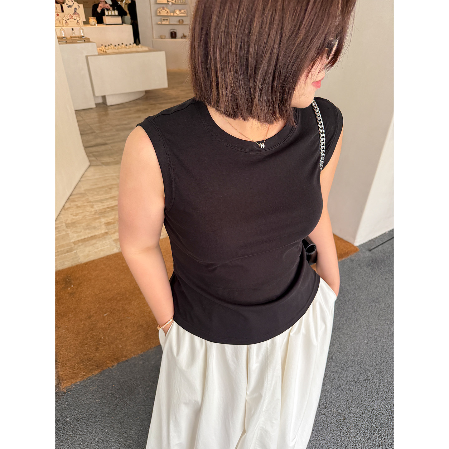 胖mm夏季无袖背心木子理想大码女装舒适弹力200斤遮副乳内搭T恤
