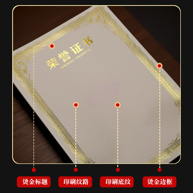《20张装》领风高档烫金荣誉证书内芯A4加厚140g纸张企业学校表彰颁奖证件书用纸可定制打印