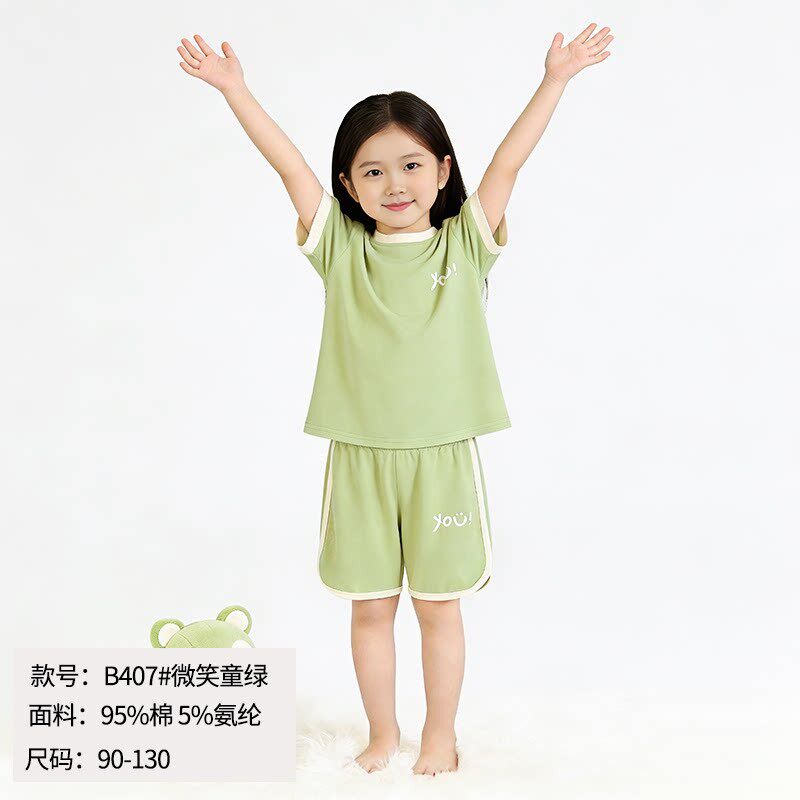 儿童纯棉a类短袖短裤套装夏男孩居家睡衣外穿女童凉感运动两件套