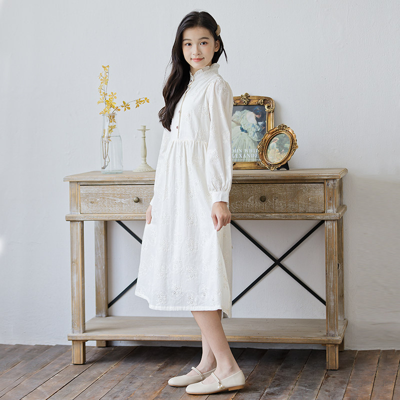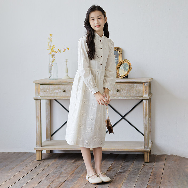 中大女童长袖连衣裙2026新款中式休闲公主裙子女孩立领洋气春秋装