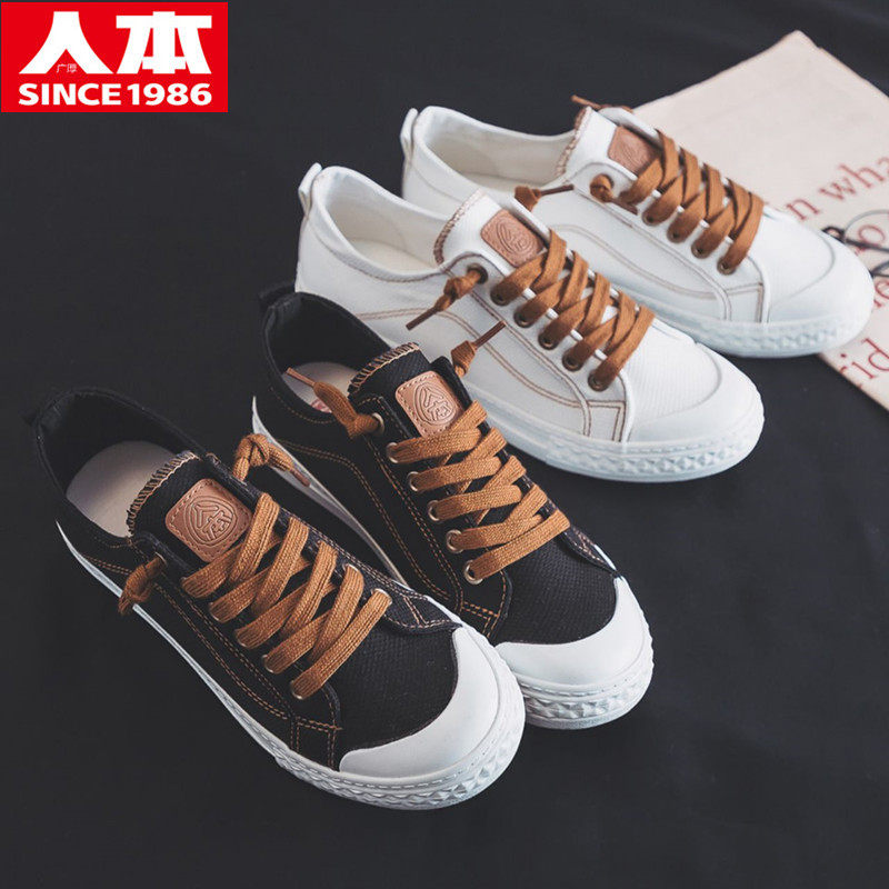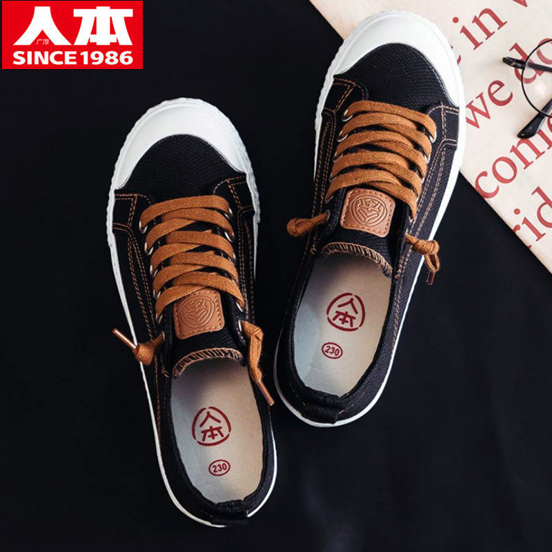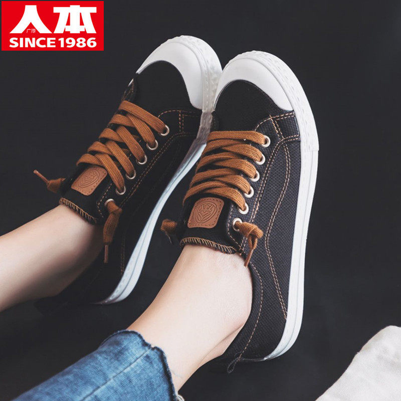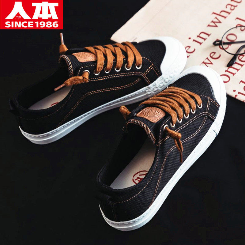 人本懒人鞋女夏季薄款透气帆布鞋女鞋子2026春秋黑色平底休闲板鞋