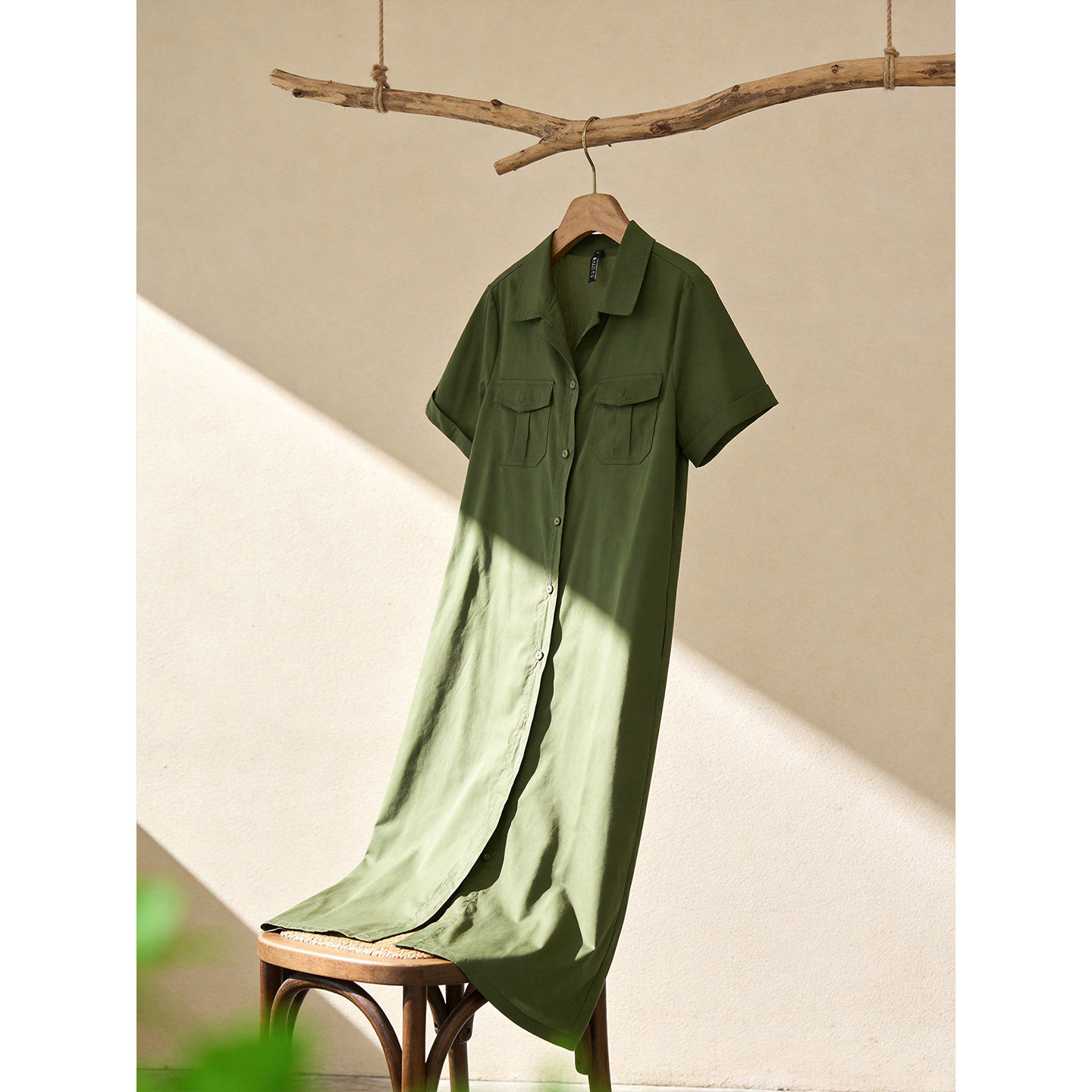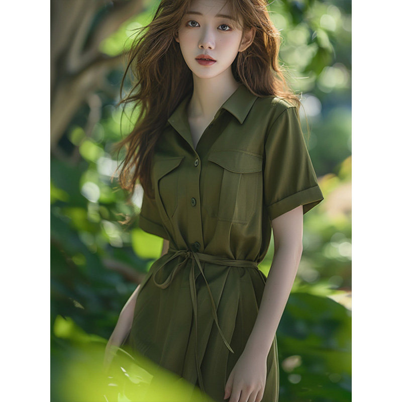军绿色短袖连衣裙女2026新款夏季轻奢高级感polo领a字收腰裙子