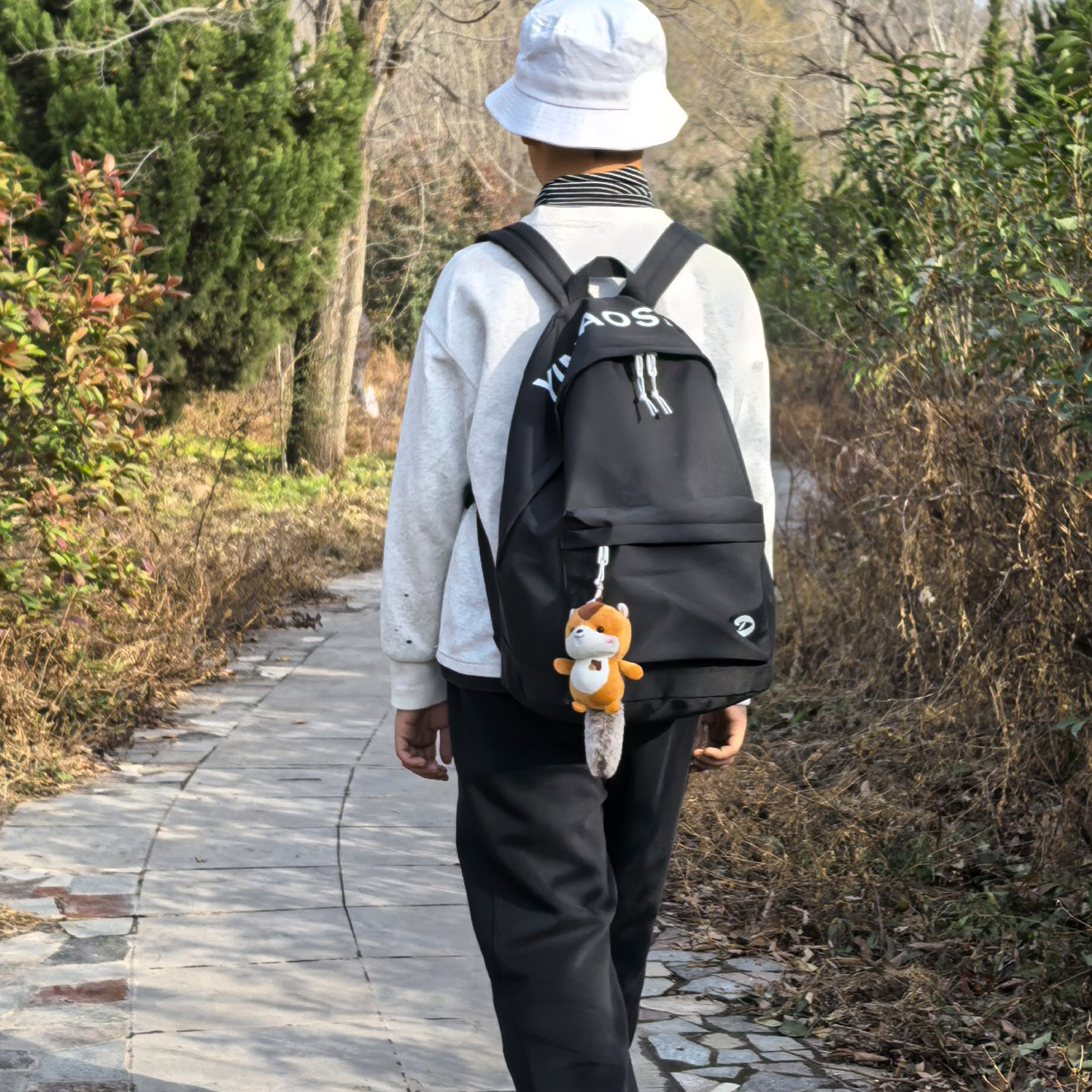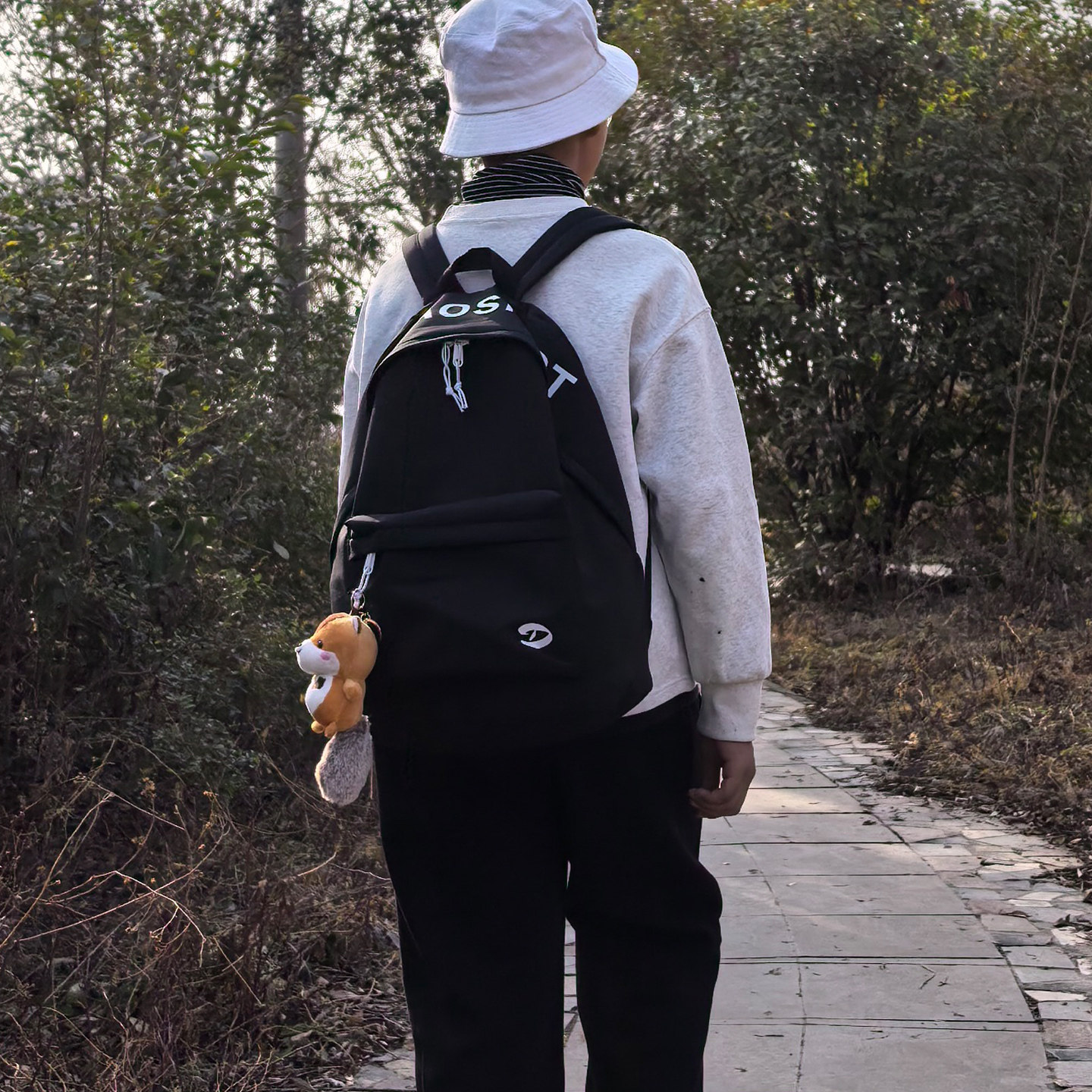 书包男生双肩包女生简约百搭字母新款大学生高中生初中生黑色背包