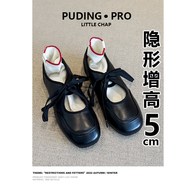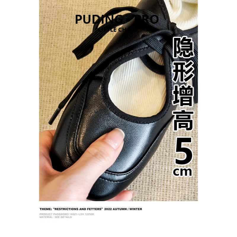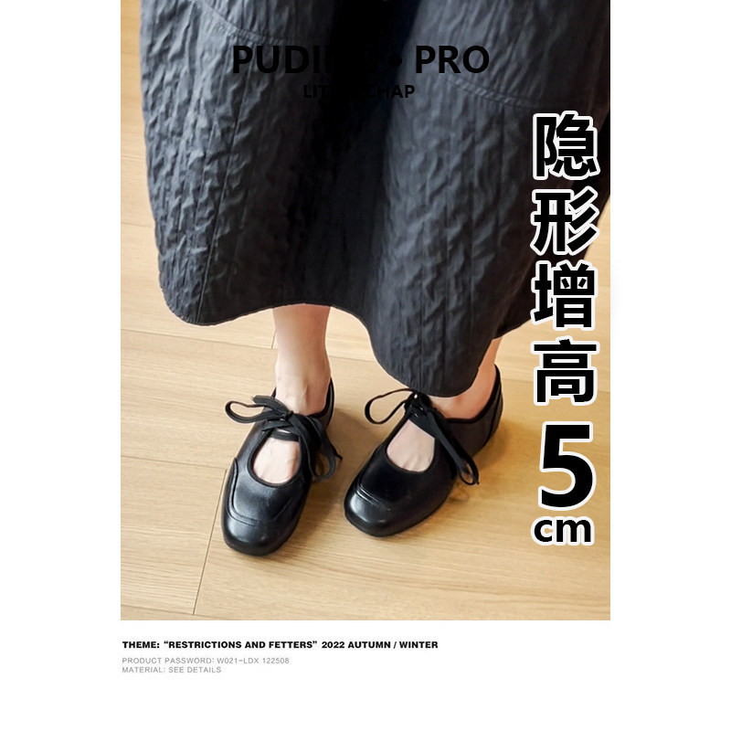 羊皮版~内增高镂空系带小白鞋女2026春季新款小个子软底玛丽珍鞋