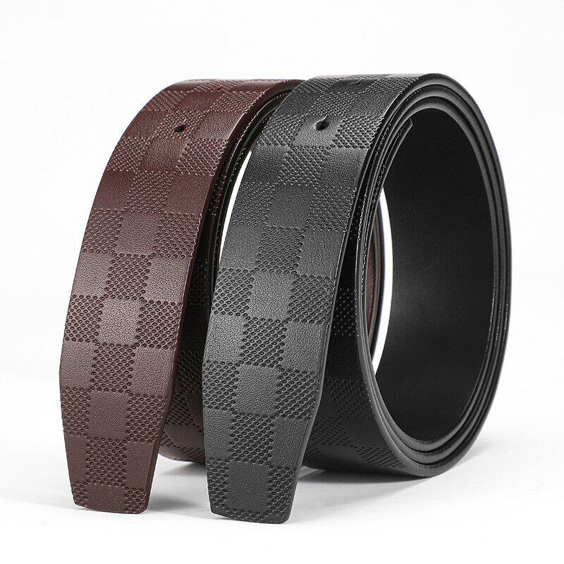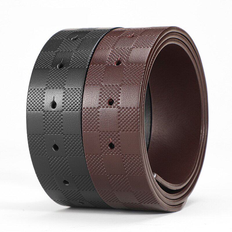 皮带男士真皮格子不带头打孔无扣头层双面牛皮Z纯带条H裤腰带身潮
