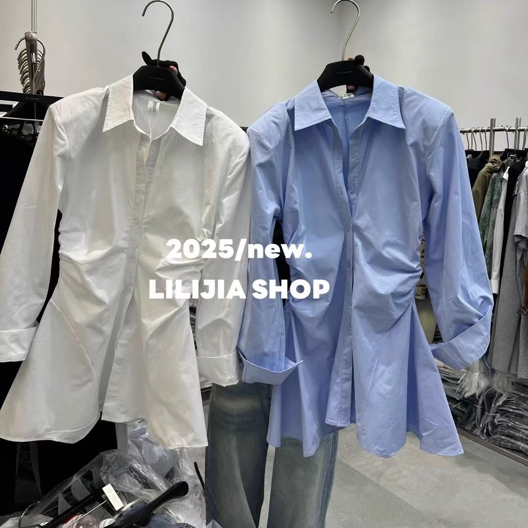 韩国东大门2025春季新款气质收腰A字短款连衣裙高级感长袖衬衫裙
