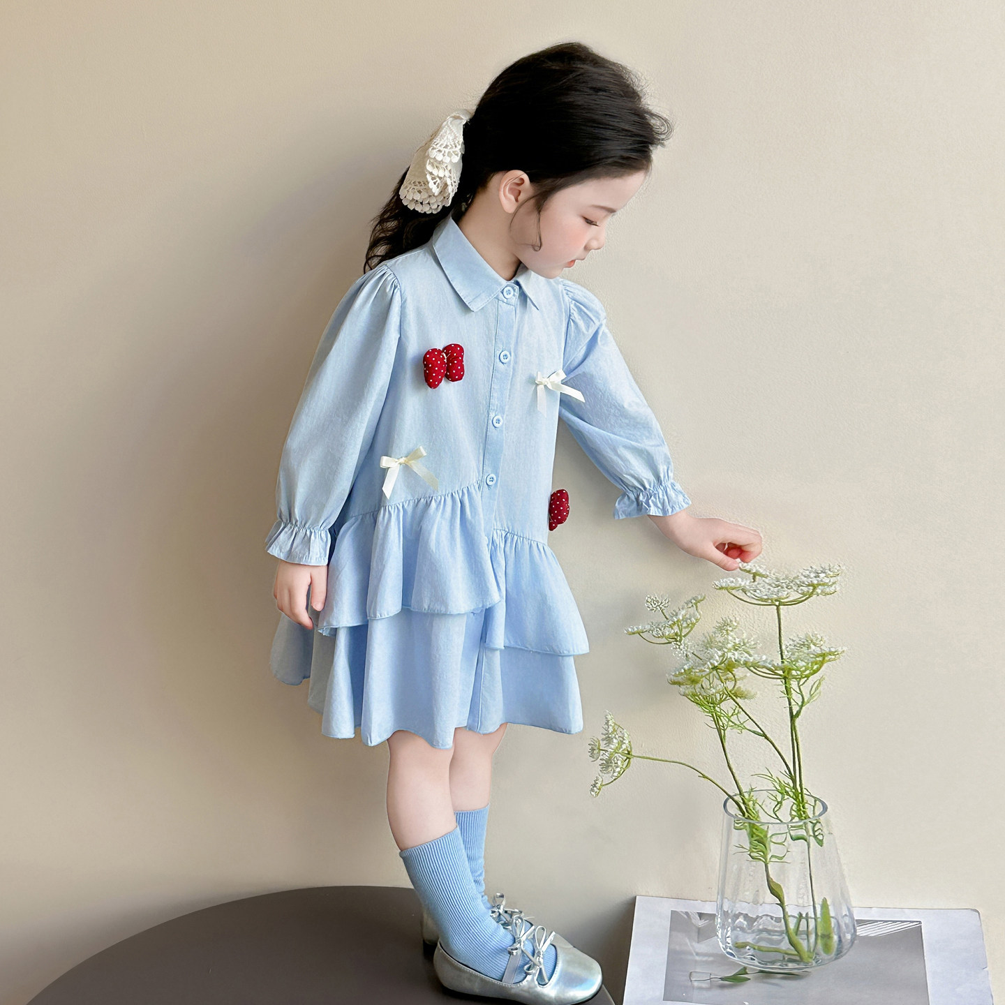 女童连衣裙春秋季2026新款长袖儿童衬衫裙子女宝宝春装韩系公主裙