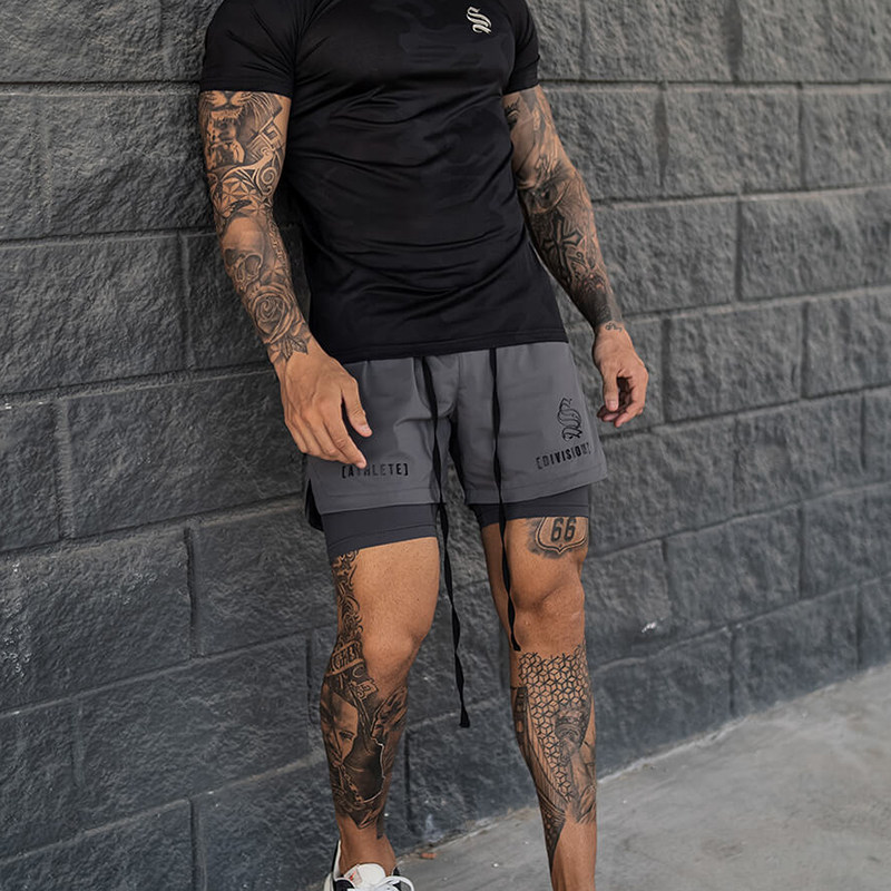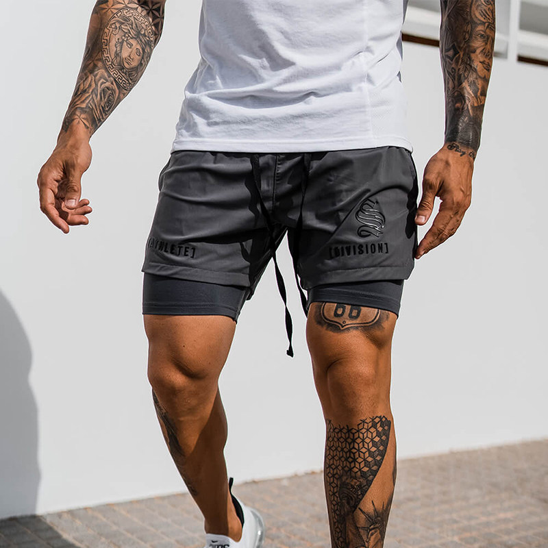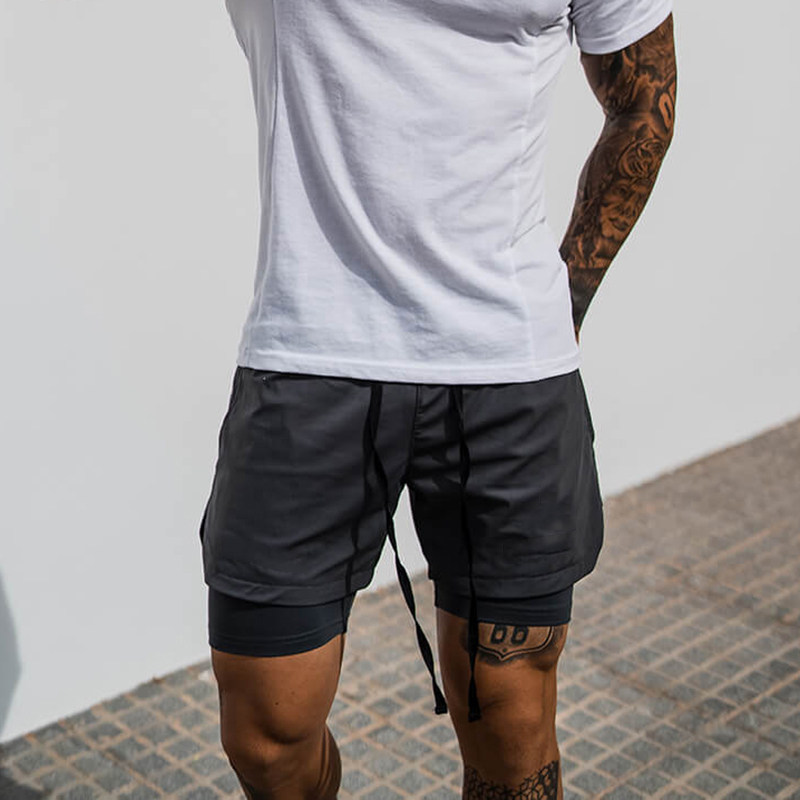 健身跑步双层带内衬假两件美式篮球运动短裤男弹力速干训练三分裤