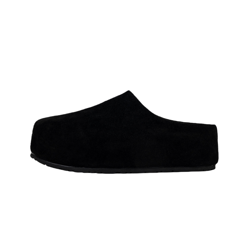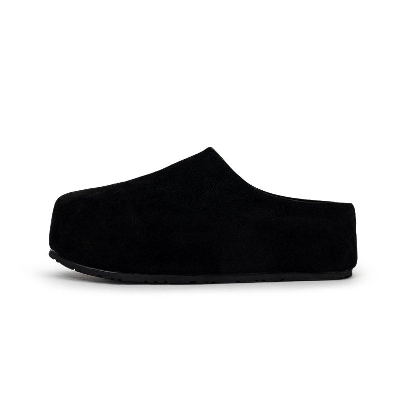 【高品质】黑色大头厚底勃肯鞋男款女懒人一脚蹬半拖鞋增高穆勒鞋