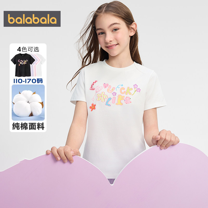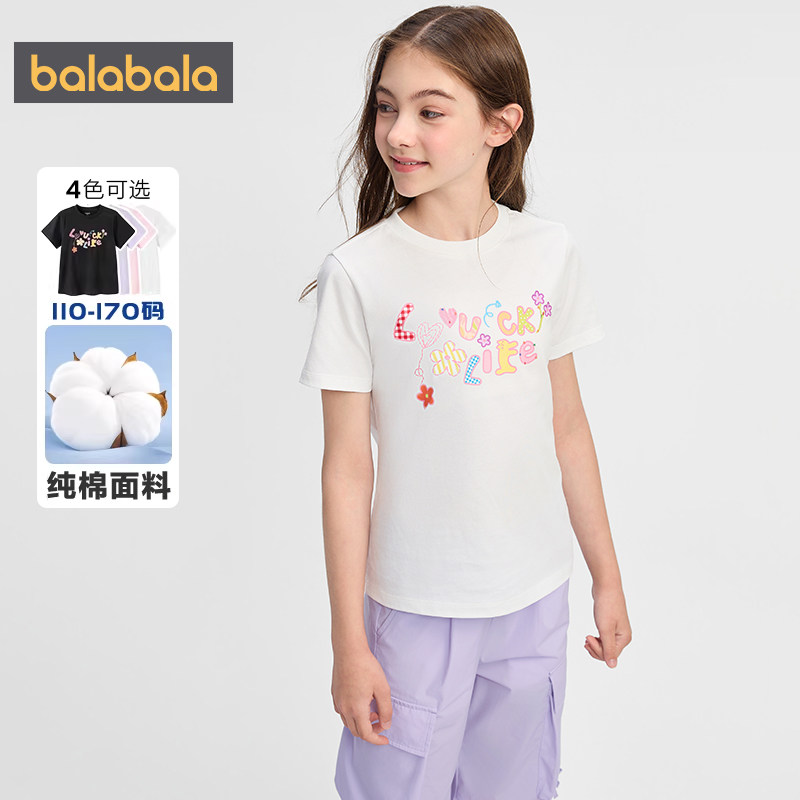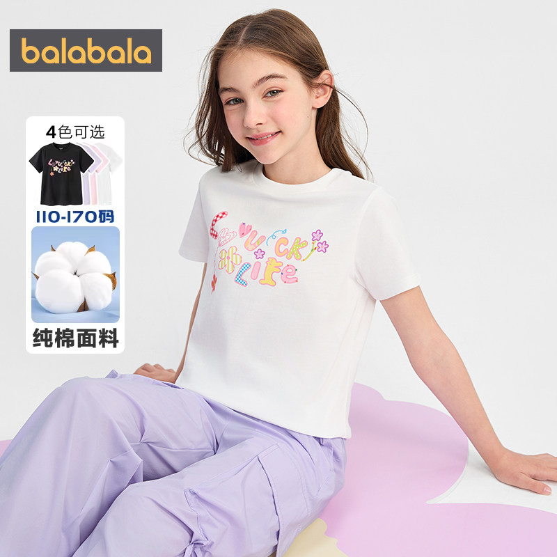 巴拉巴拉女童短袖t恤中大童纯棉短款上衣夏装2026新款童装打底衫