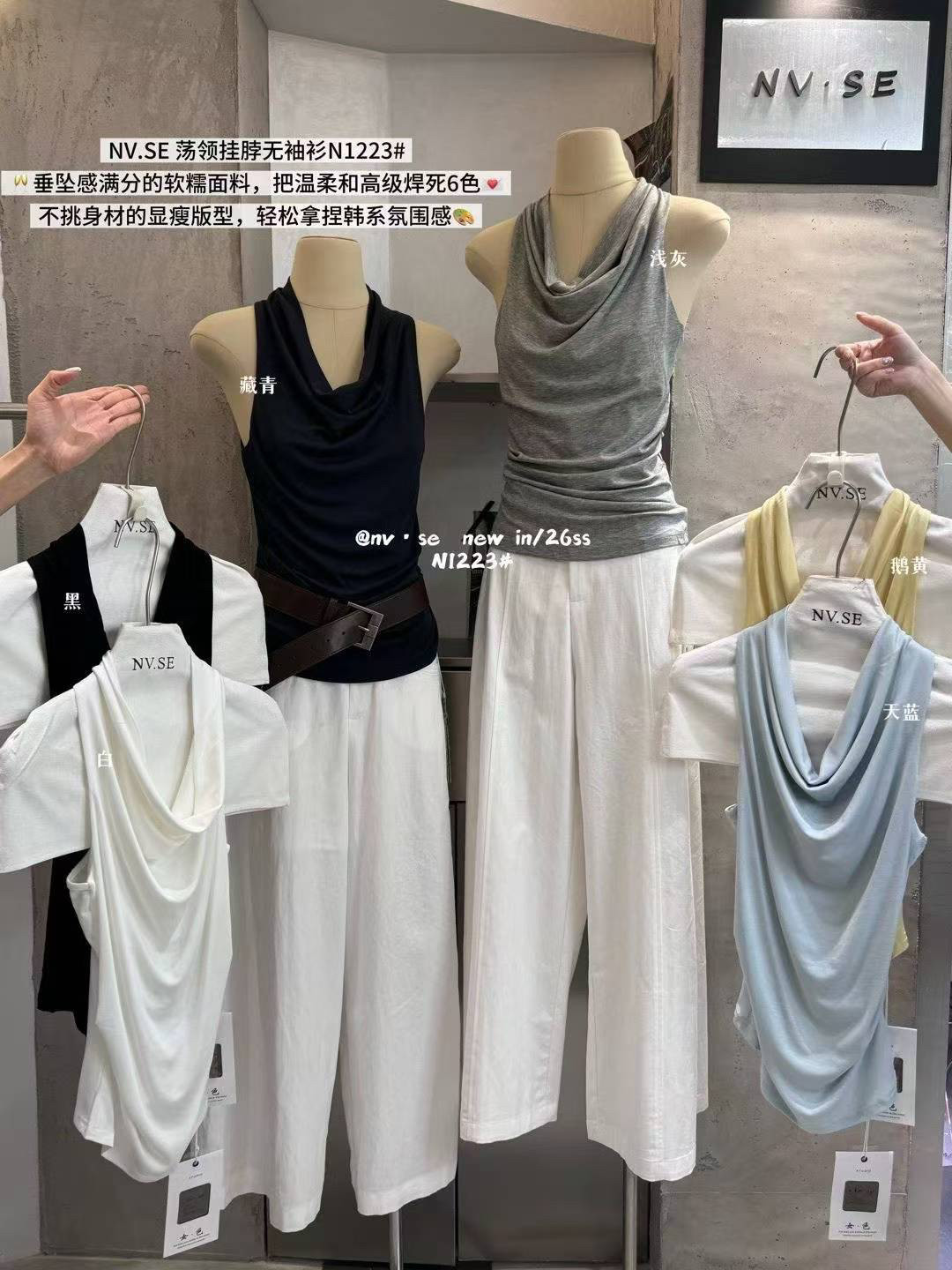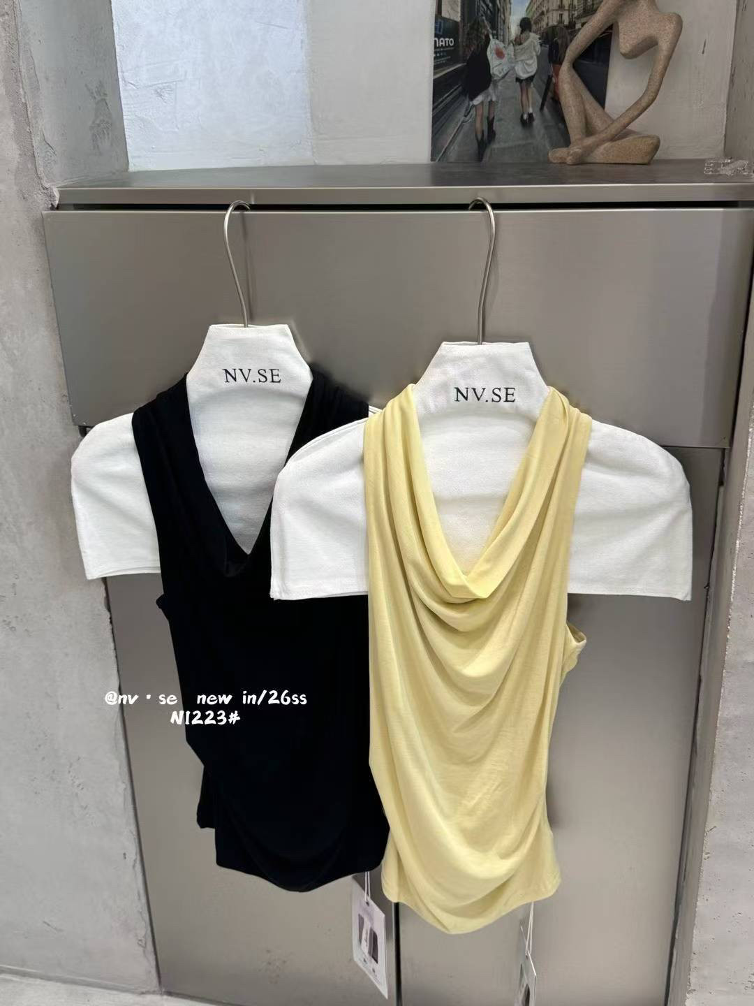 荡领吊带背心女无袖高级感t恤2026早春新款白色打底衫内搭上衣女