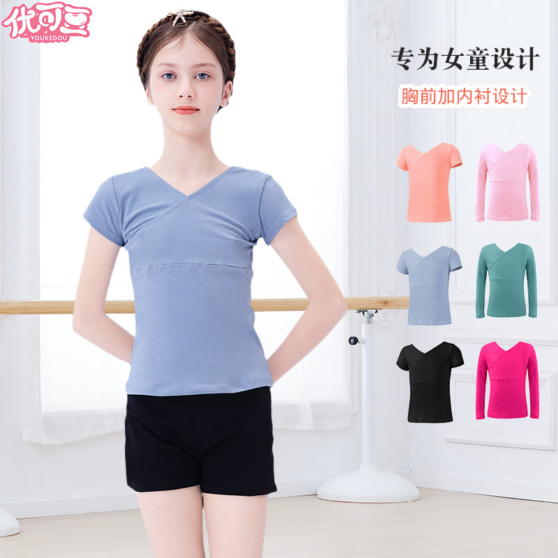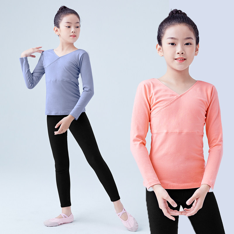 儿童舞蹈服练功服上衣女长袖形体大童女童黑色体操跳舞衣服拉丁舞