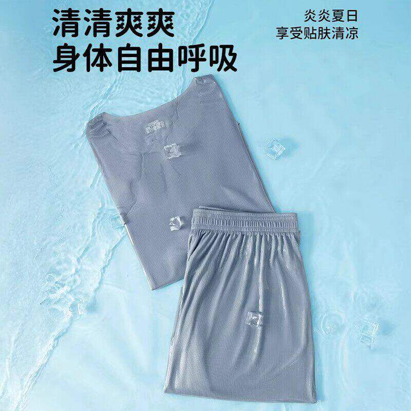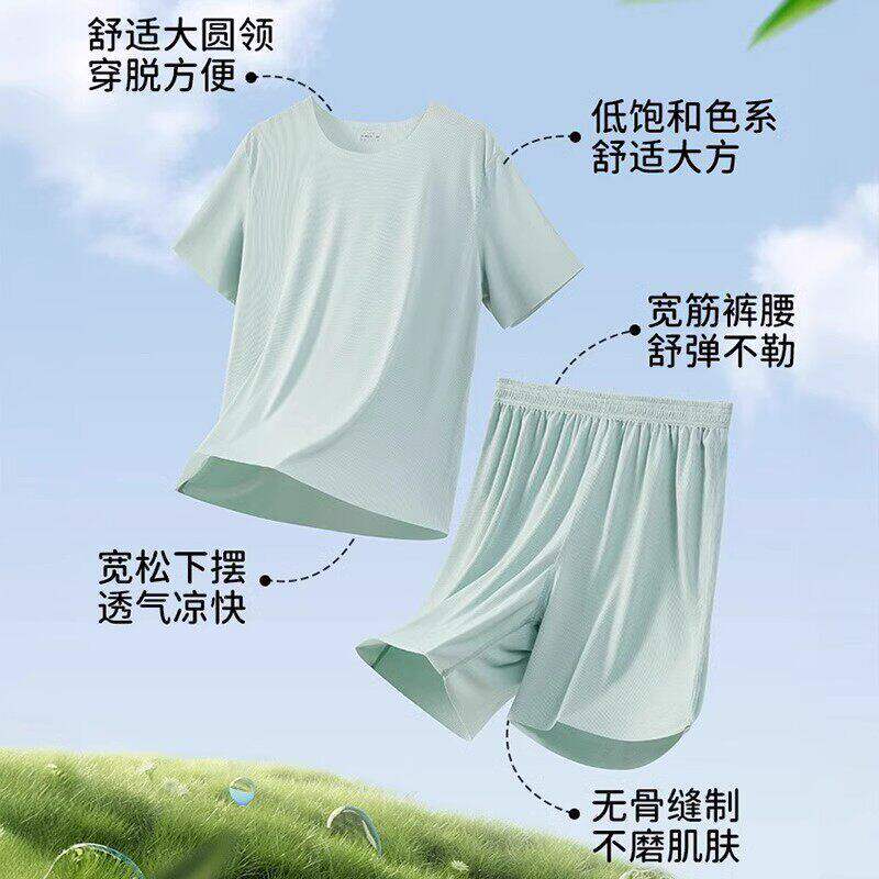 莫代尔男士睡衣冰丝夏季短袖新款学生青少年家居服套装薄款速干
