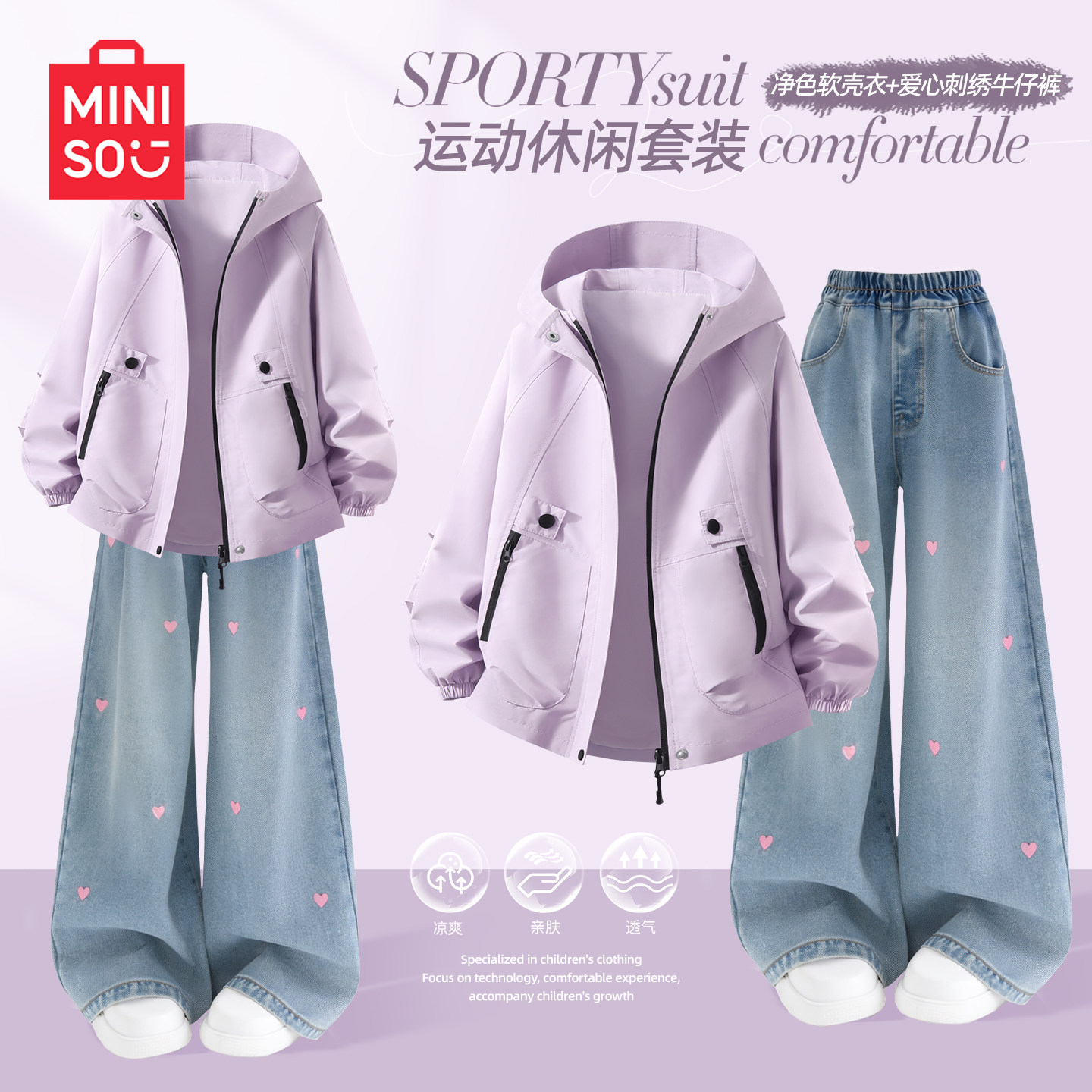 名创优品女童春装套装2026新款早春薄款女孩牛仔裤防水儿童外套女