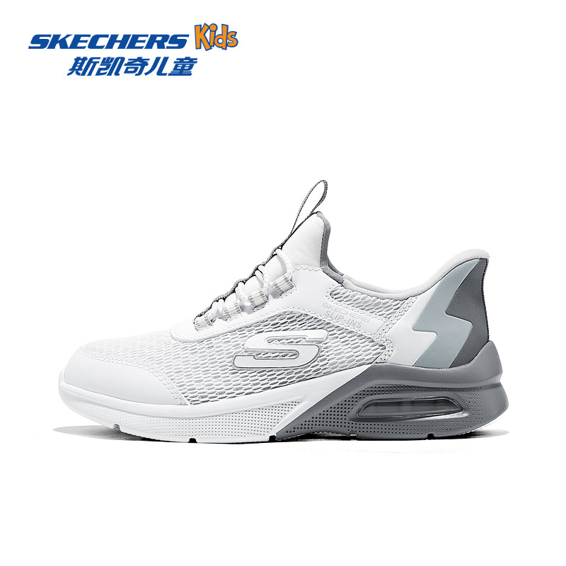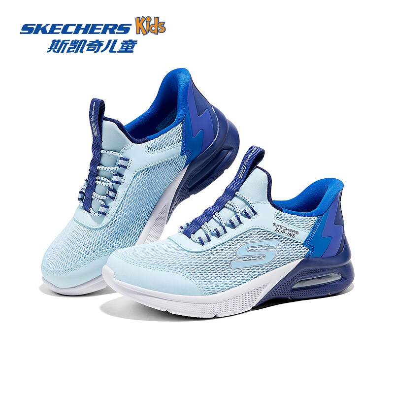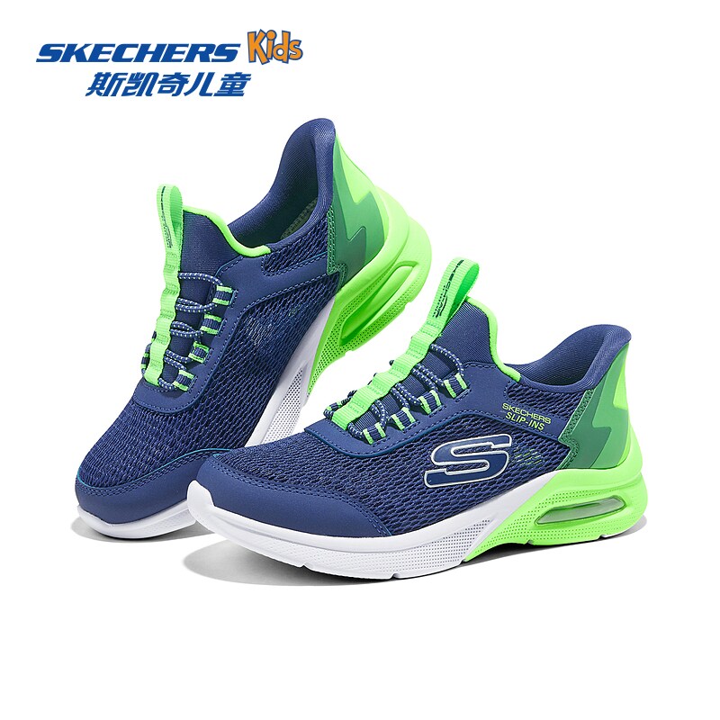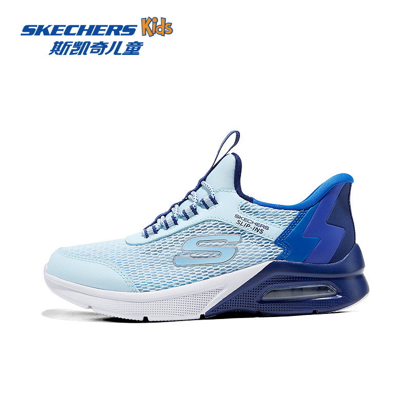 Skechers斯凯奇儿童闪穿鞋春夏网面透气运动鞋男童一脚蹬跑步鞋