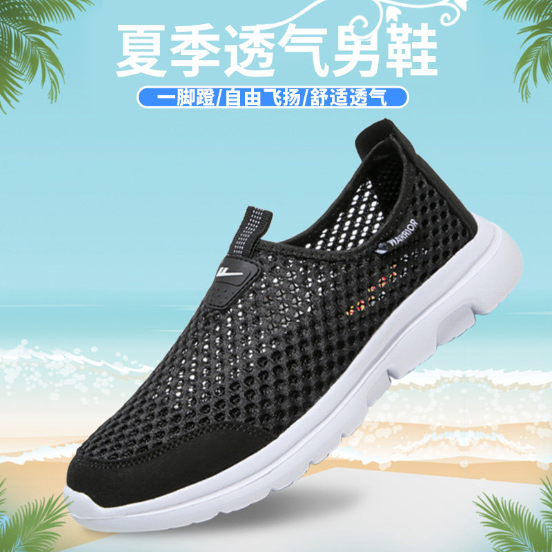 回力网鞋男鞋透气春夏男士套脚休闲鞋镂空运动鞋一脚蹬网面潮鞋