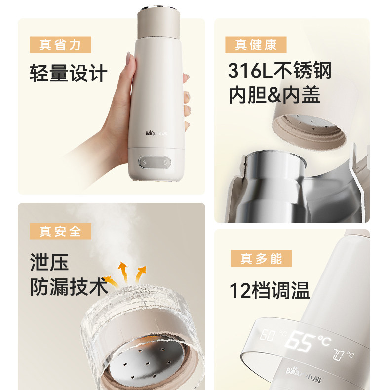 小熊烧水杯便携式烧水壶小型恒温壶电热水杯加热保温杯旅行热水壶