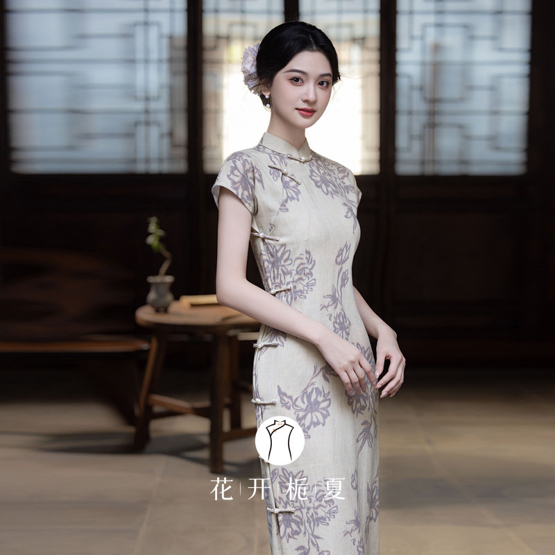 古法全开襟素雅旗袍新中式国风文艺印花长款连衣裙日常可穿10/10