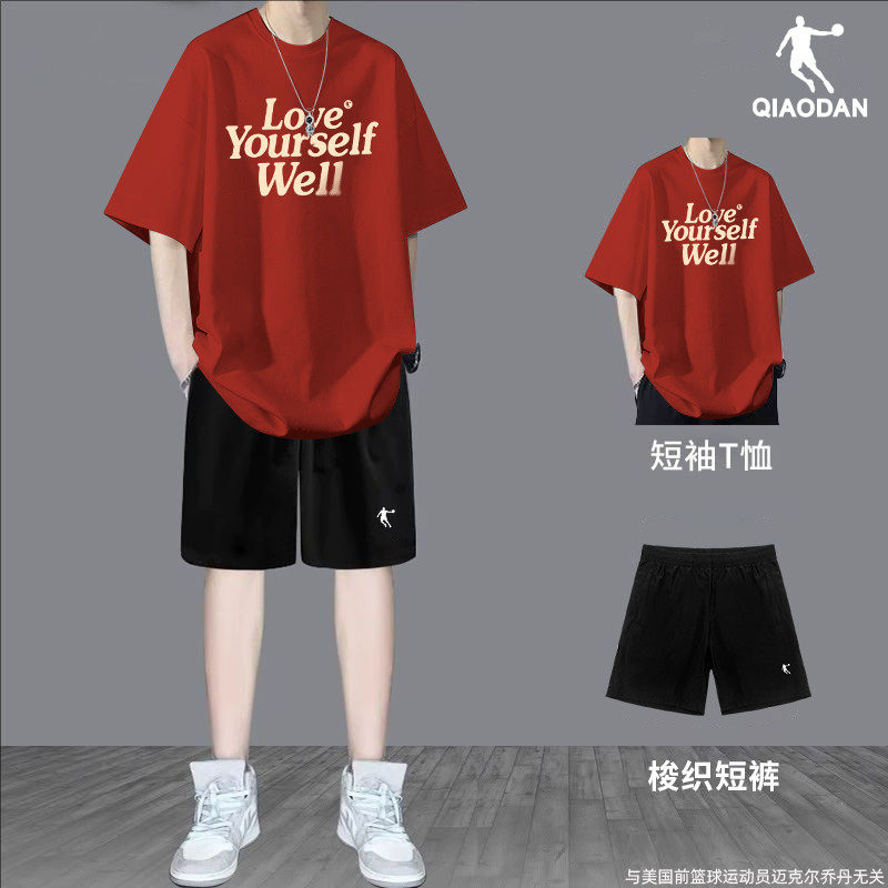 乔丹休闲套装男2026夏季新款潮流宽松短袖短裤两件套青少年运动服