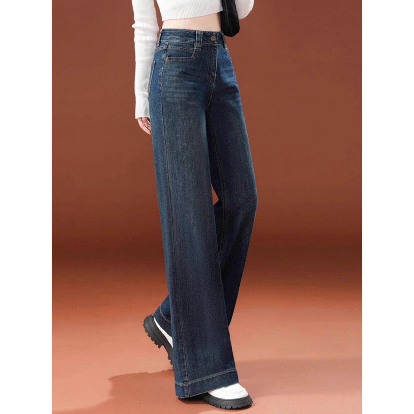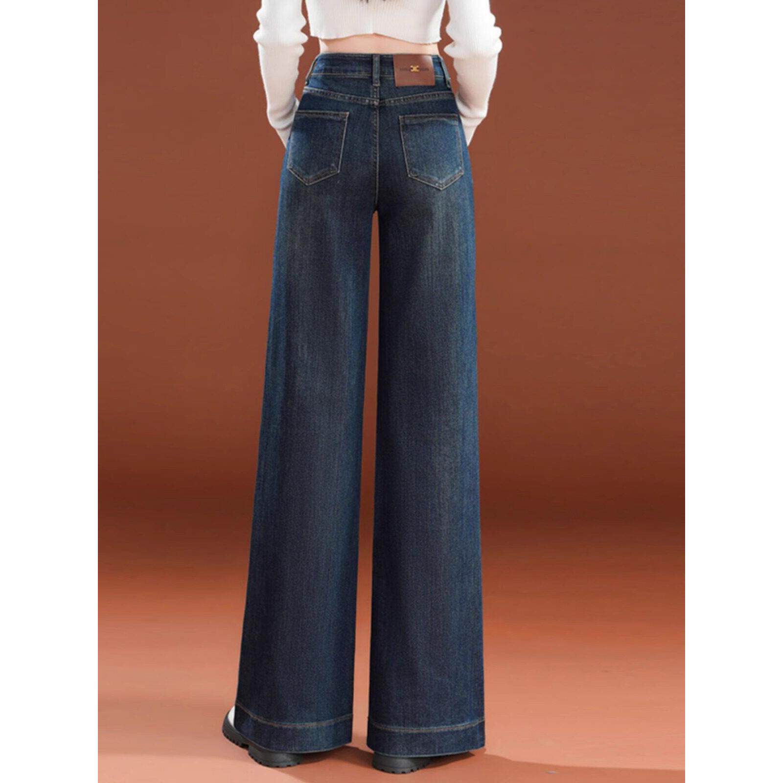 高腰直筒阔腿裤女2025秋冬新款今年流行爆款时尚加绒加厚牛仔裤女