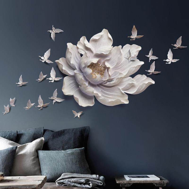 现代简约沙发背景墙面装饰新中式客厅花朵墙壁挂饰卧室床头挂件