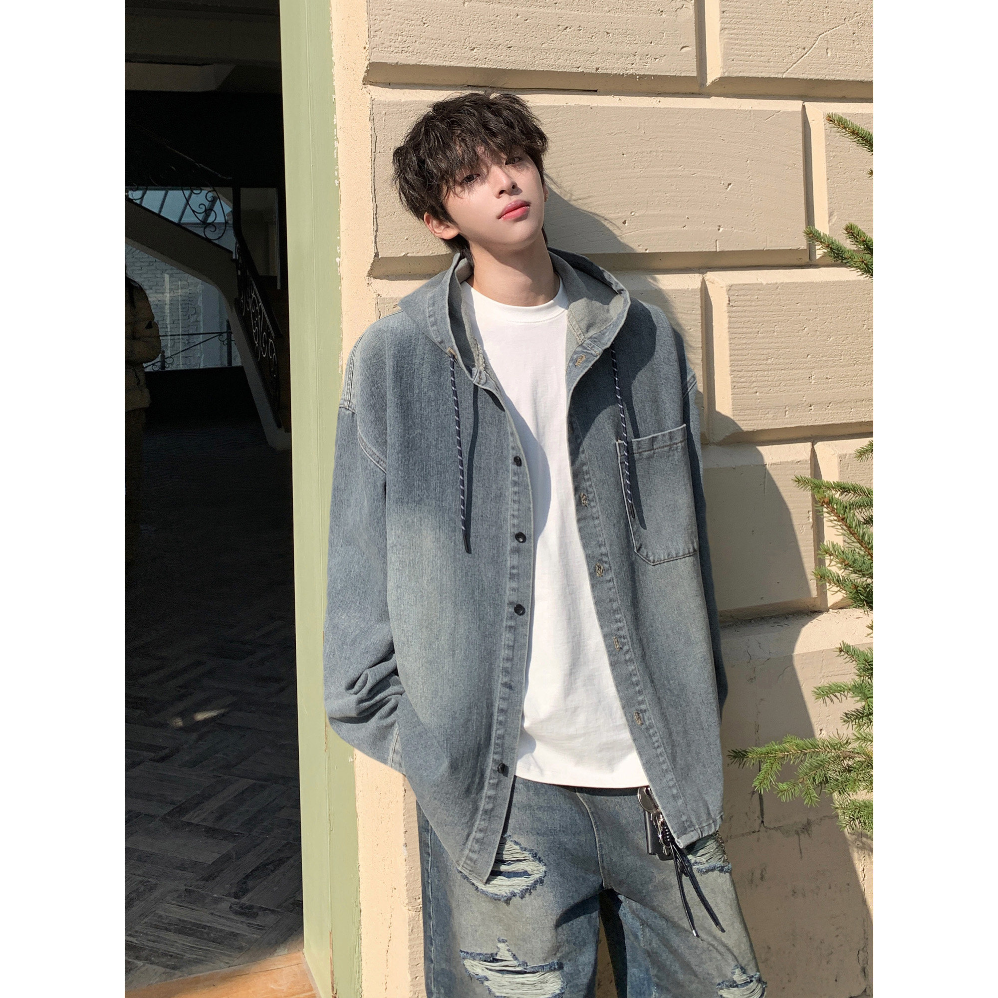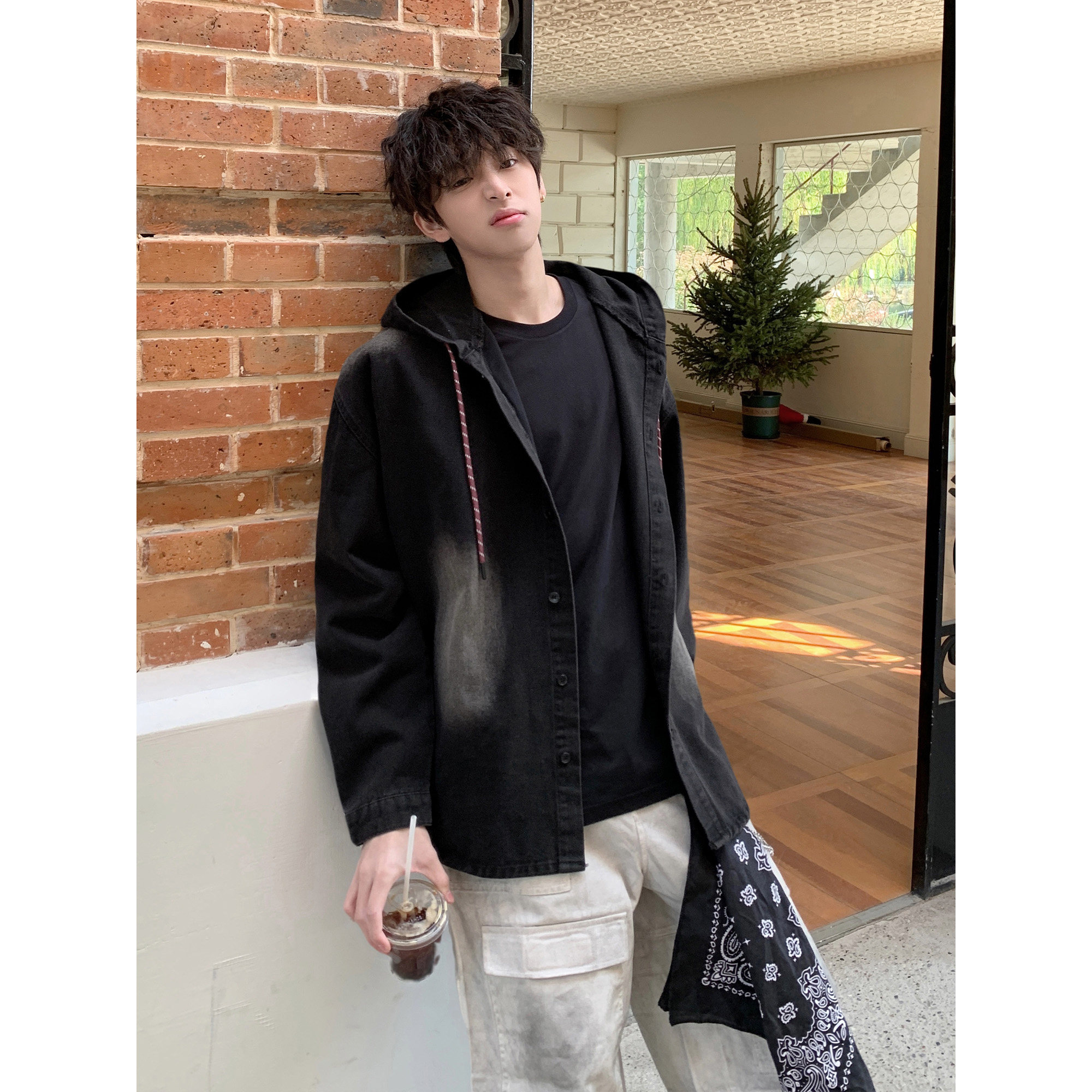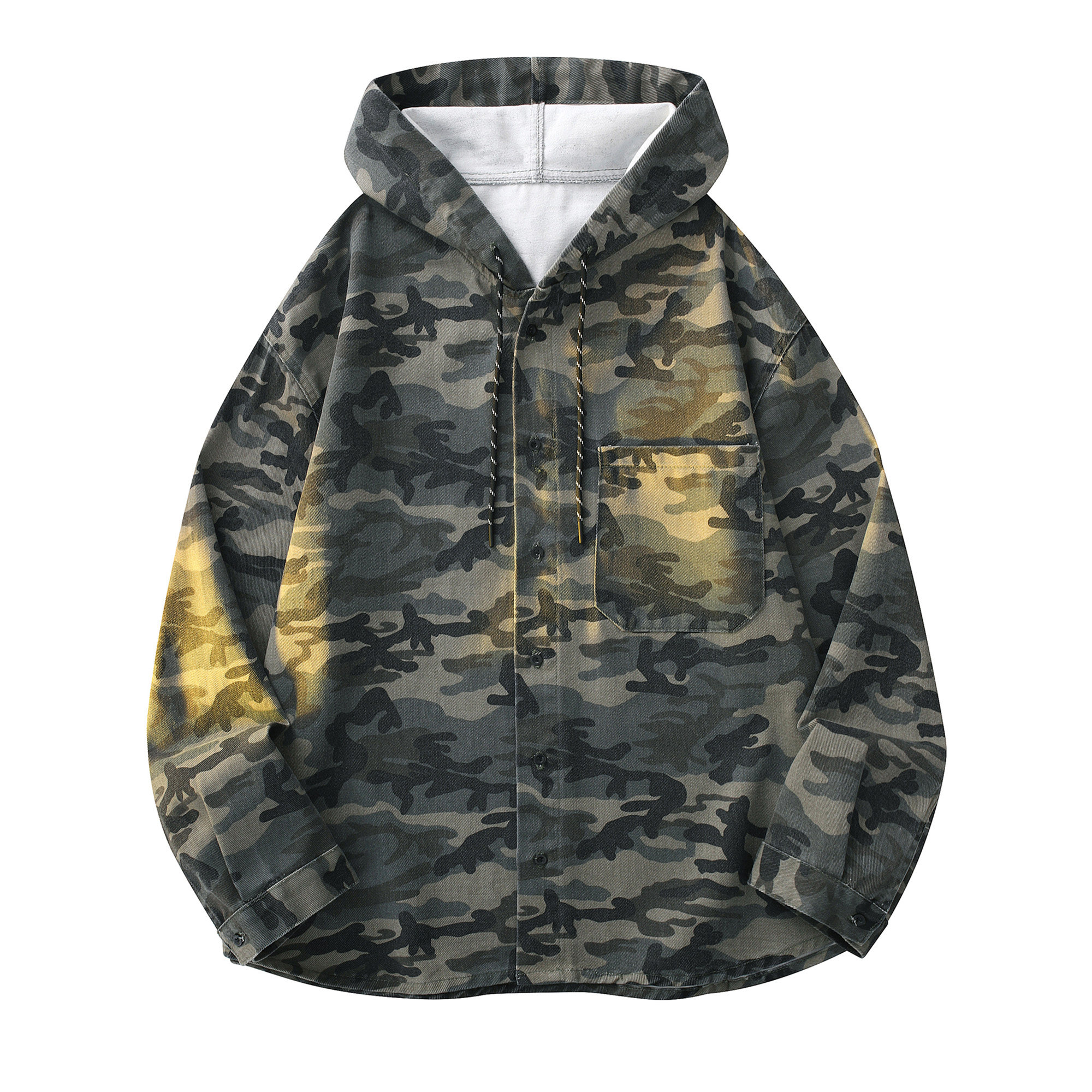 胖胖哥美式迷彩牛仔外套男款春季复古宽松休闲长袖开衫连帽卫衣